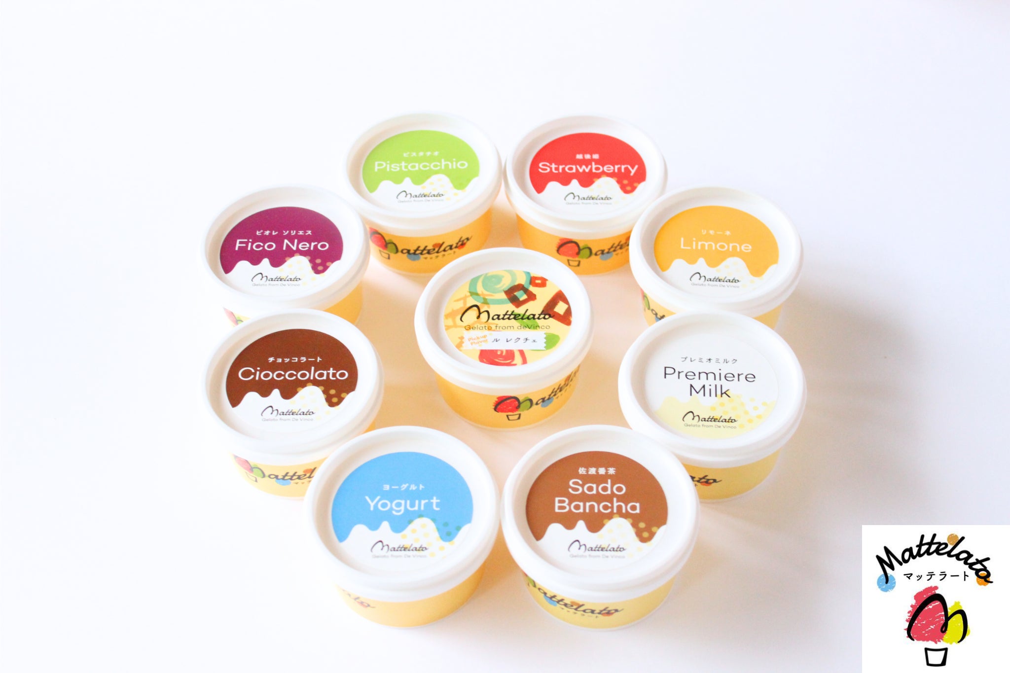 ・ル レクチェ・黒いちじく(ビオレソリエス)・いちご(越後姫)・レモン・島プレミオミルク・ピスタチオ・チョコラータ・佐渡番茶・ヨーグルト