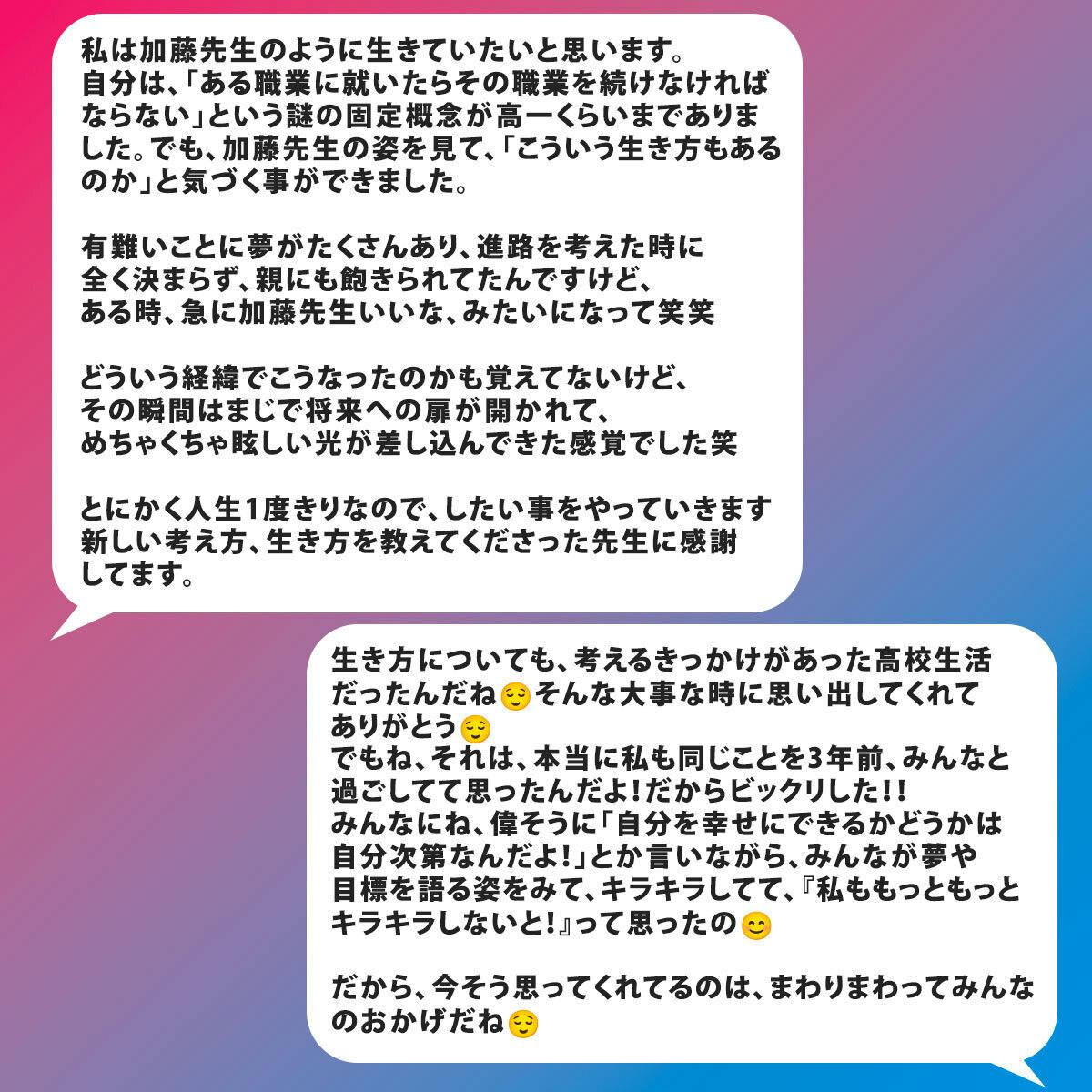 卒業のタイミングで何人かの生徒からメッセージが届きました。