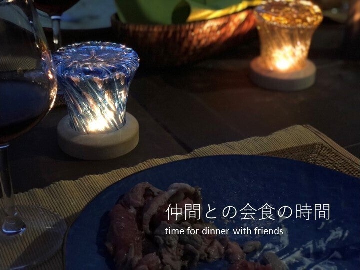 「アサガオランプ」は色ガラスの新たな楽しみ方を模索し、光とガラスと切子の新たな楽しみ方を提案したいと思いつくったコードレスタイプの灯りです。スイッチを押すだけで3段階の灯りが切り替えられ、お好きな場所でお使えいただけます。
