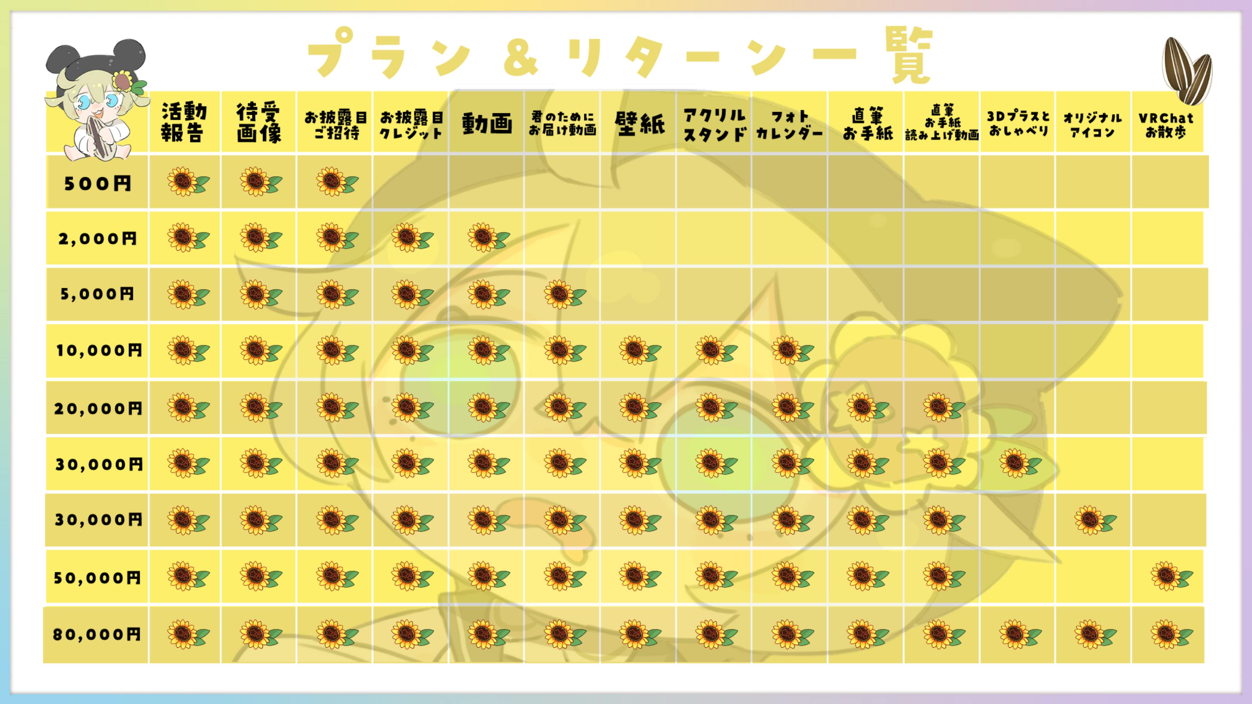 ※ プロジェクト終了後、プランを購入して下さった皆さまに各プランの詳細説明メールをお送りいたしますのでそちらをご覧ください。