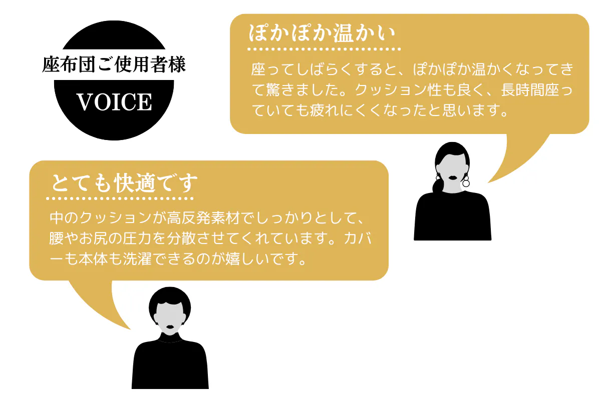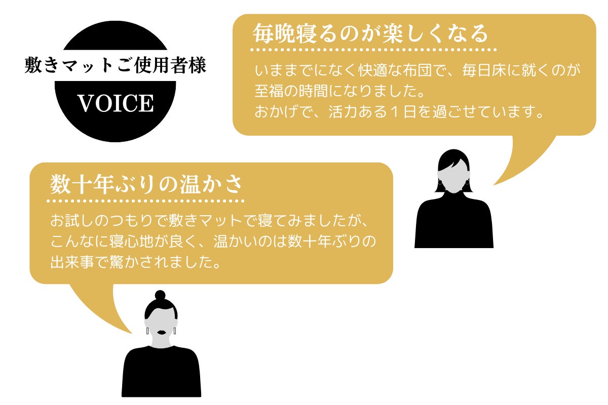 実際にASHITAMOさんの敷きマットを使ってみた感想は、身体がポカポカして、めぐりが良くなっている感じがするので、眠りやすいし、とっても体調が良いです。カバーもオシャレで、可愛くて、とっても素敵です。私のような年代の女性は身体に不調を抱えやすいので、このようなアイテムがあるだけで嬉しいです!』