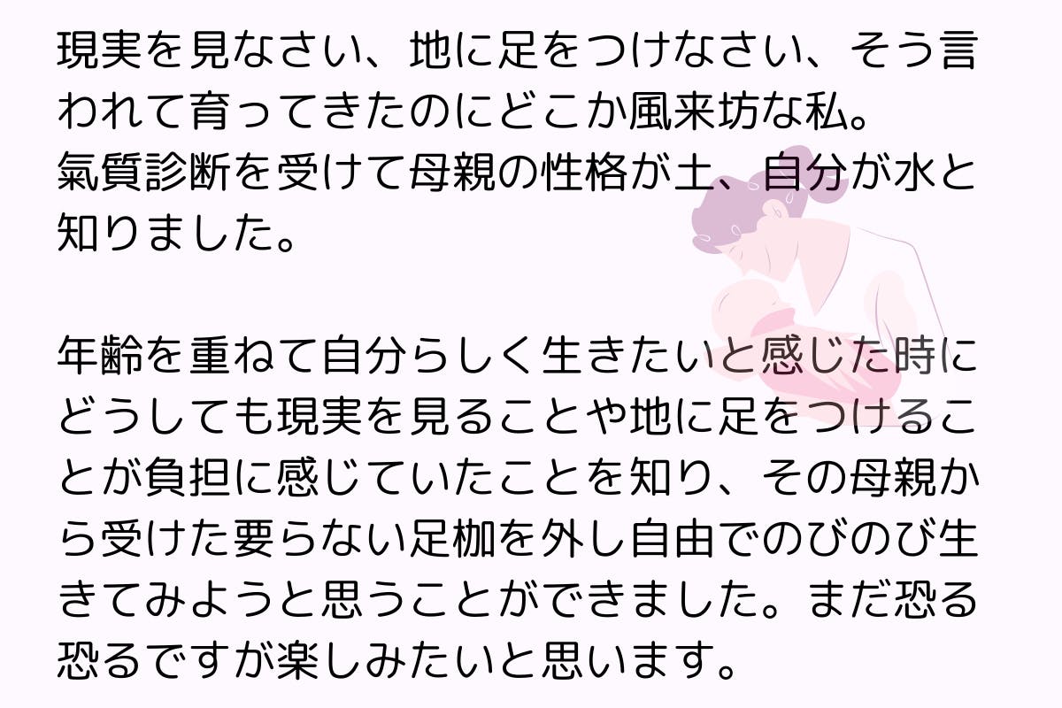 氣質診断をベースに、母親とあなたの氣質をまず見ていきます。