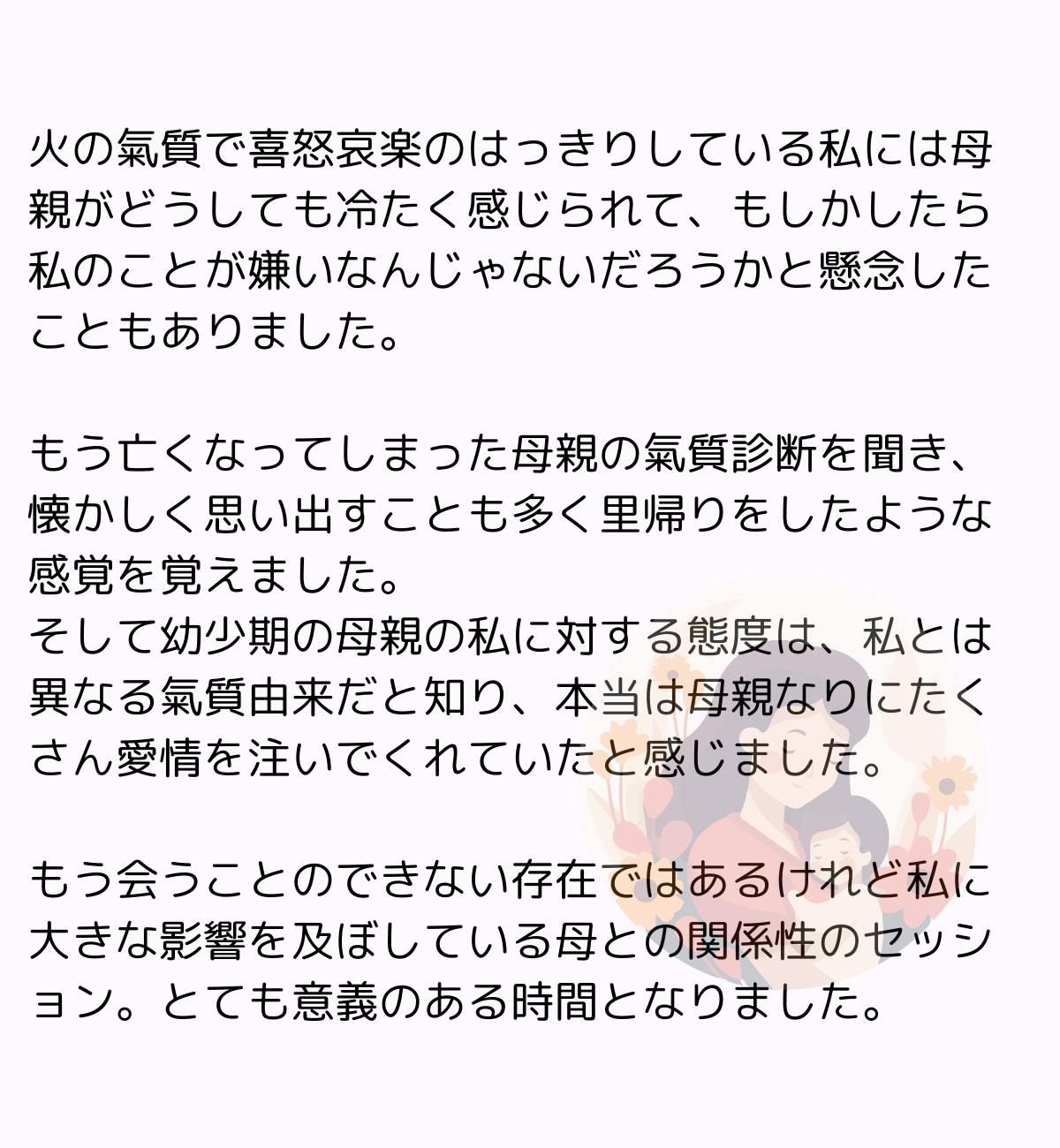 ご自身で氣質診断を学ばれることで、母子セッションもさらに深く理解できます。