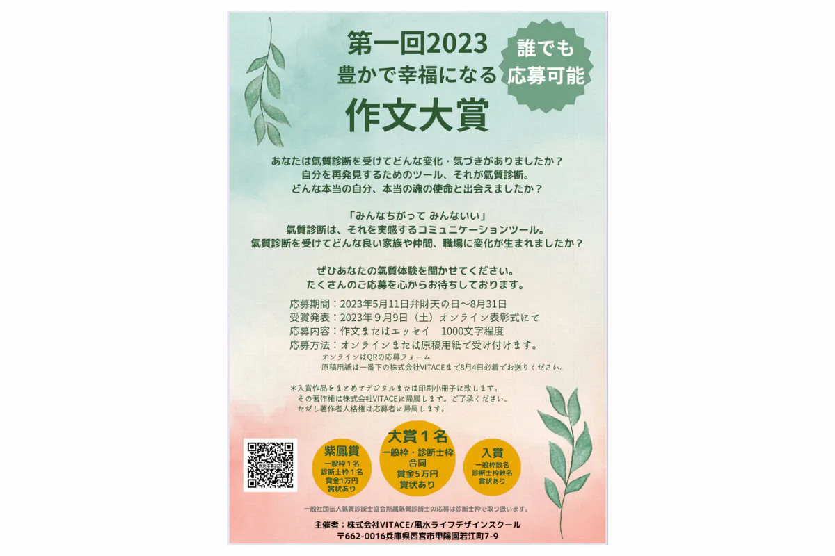 ・氣質診断士を受けられた方が応募できる「作文大賞」の賞金の一部