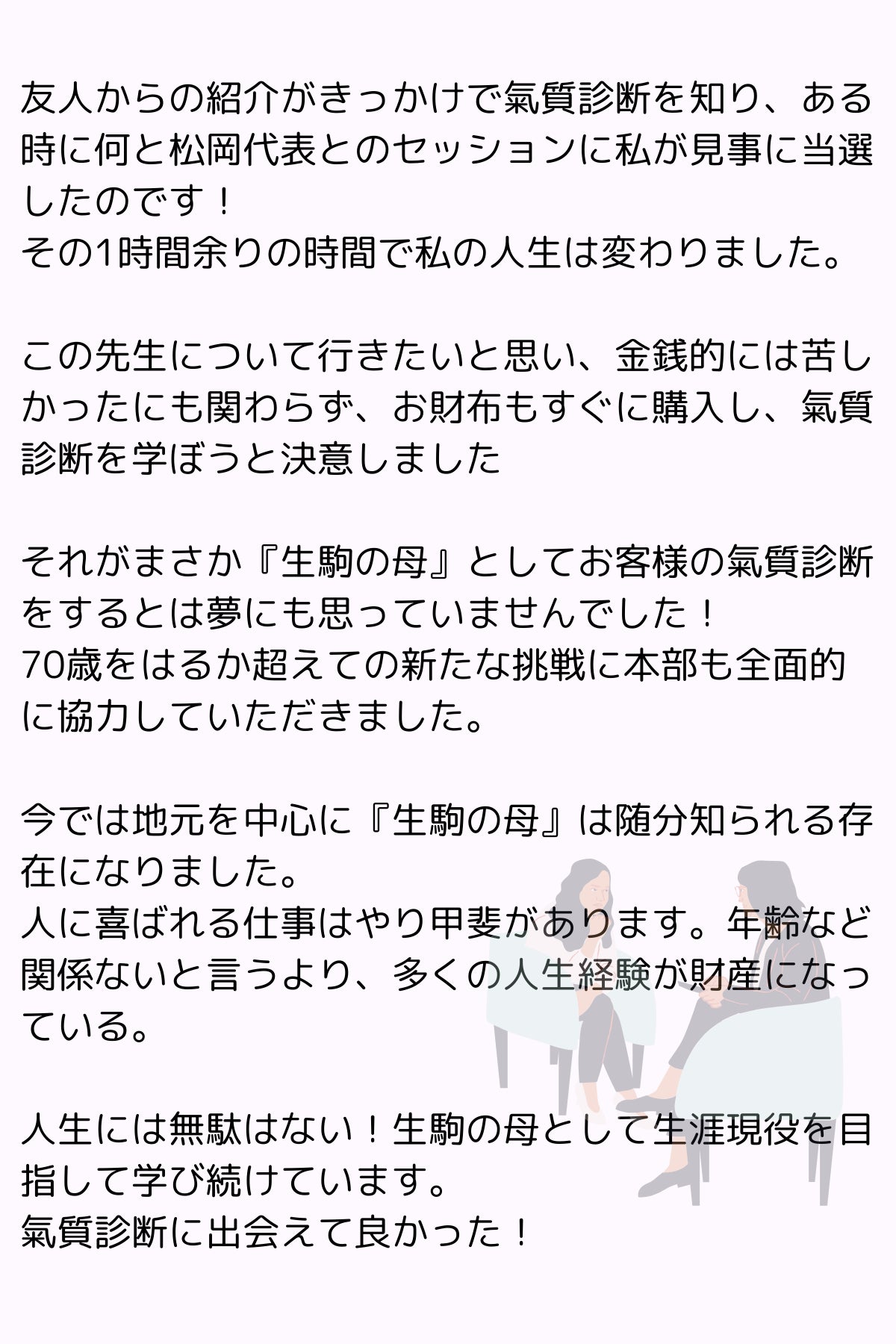 実際に74歳から学びを始めて、77歳の現在、人気の氣質診断士として活躍されている方もいます。