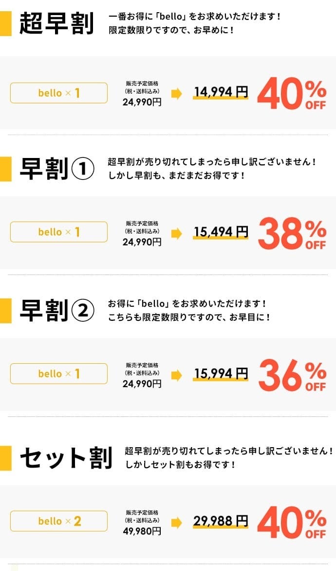 一般販売よりも先に、いち早くbelloを手に入れることができます。
