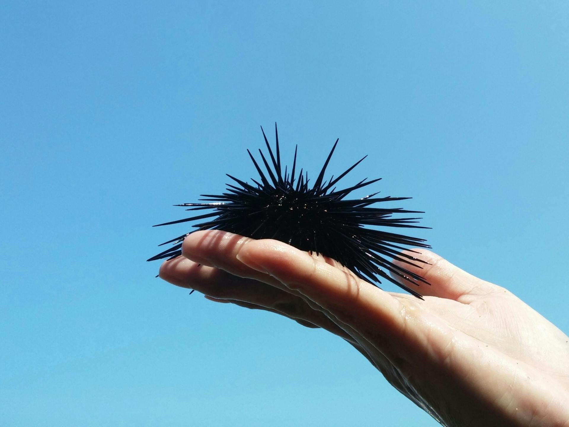 写真は磯焼け問題で食べる海藻がなくなり、中身の入っていないウニです。