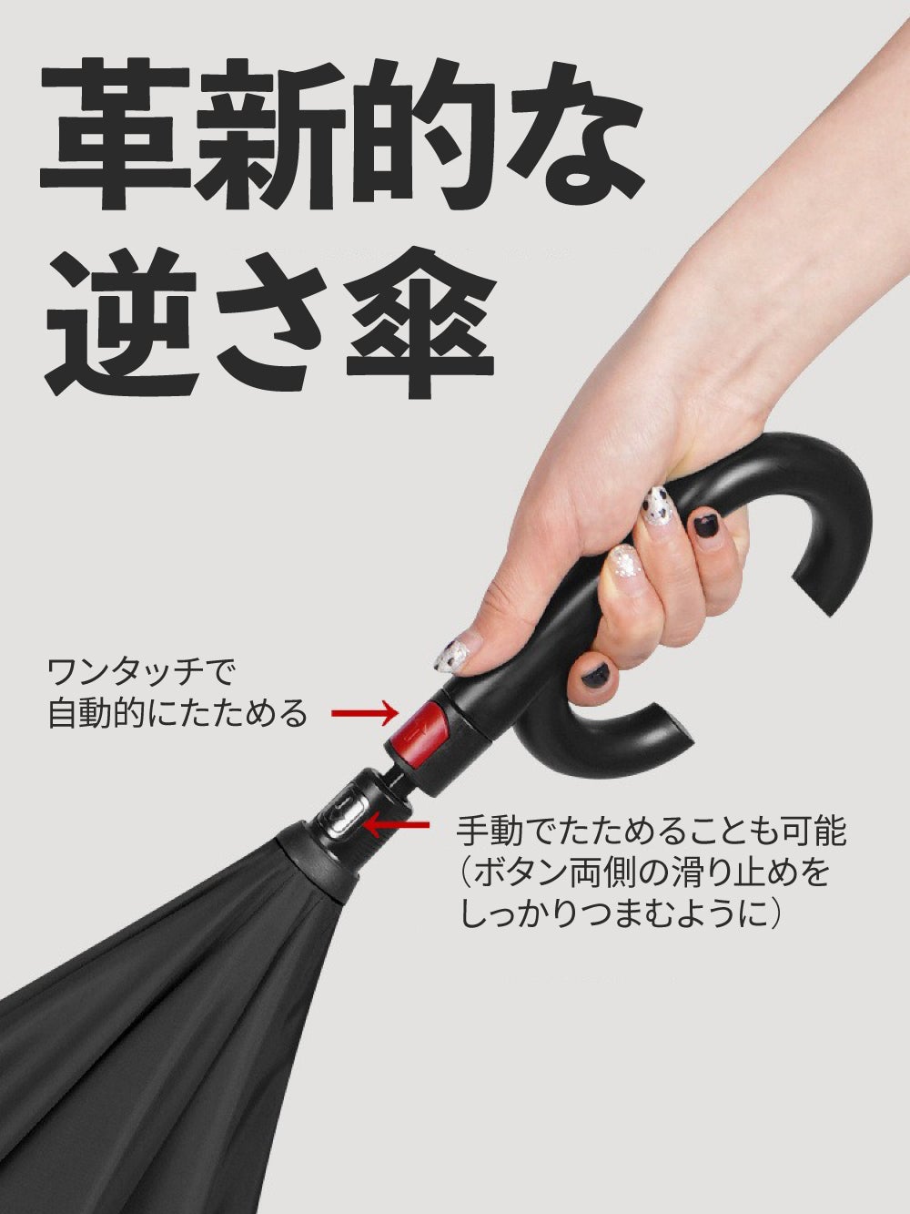 たたみ方が従来の傘と真逆なので、水滴が手元に垂れてくることはありません!