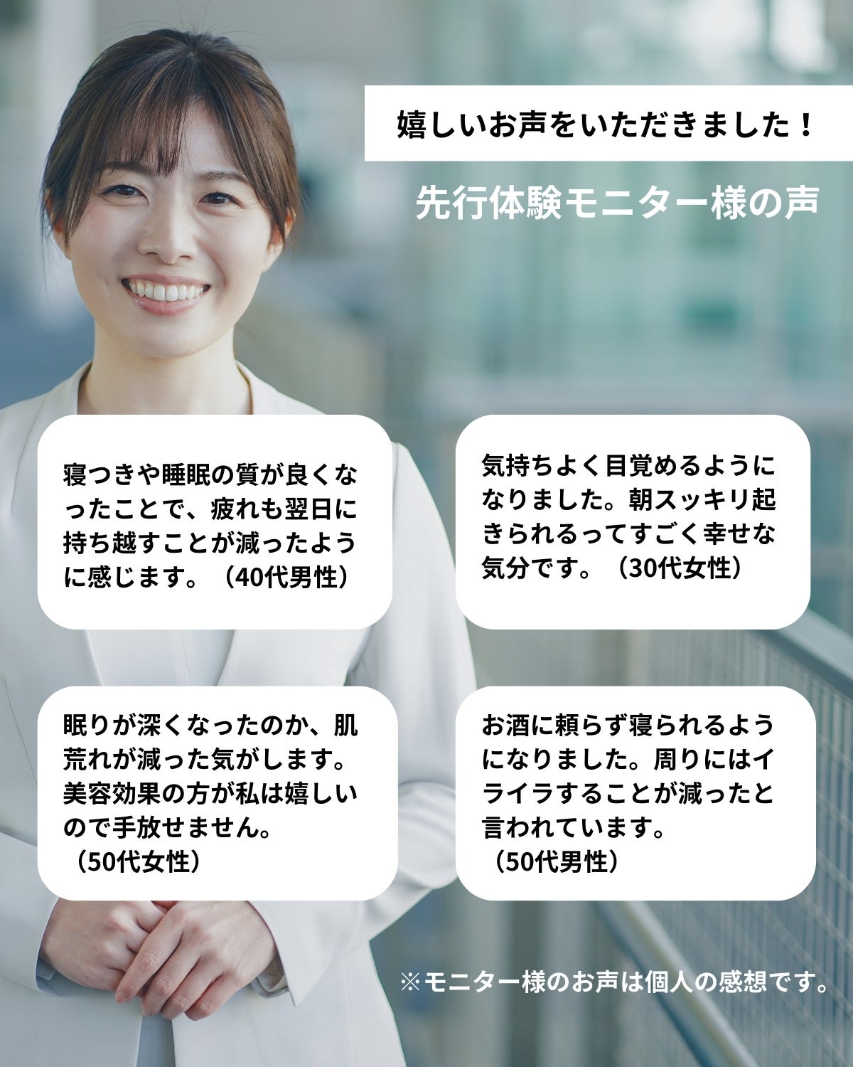 「眠りが浅くて疲れがとれない、日中に集中できない」「寝不足で精神的にイライラし、お肌も荒れる」