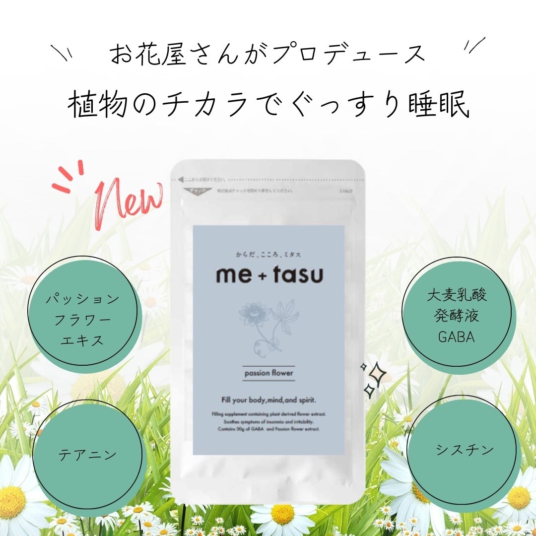 「パッションフラワー」の植物のチカラを使った快眠系サプリメント『me+tasu(ミタス)』を多くの方に使っていただきたい!!なかなか寝付けない、眠りが浅くて身体がだるい、お肌が荒れてきた、集中力がもたない、などのお悩みがある方のお役に立ちたい!!と思っています。