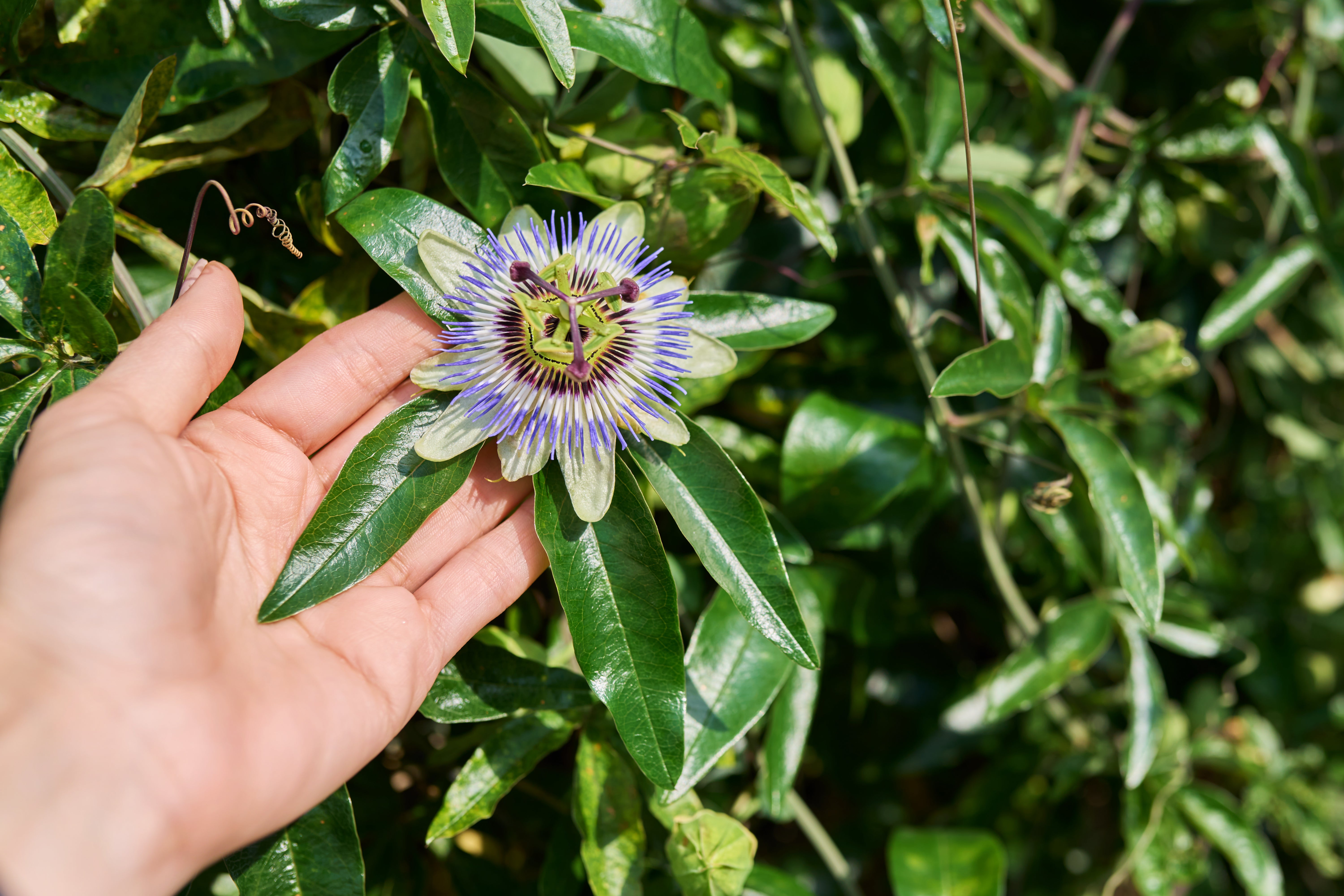パッションフラワーエキスのハ-ブサプリメントによる植物療法は、ハーブ先進国である、ドイツのコミッションE(ドイツの薬用植物の効能に関する公的評価委員会)からも、安全と効果を認められた安心・安心なハーブです。習慣性や嗜眠状態(しみんじょうたい)[※1]を誘発しない鎮静作用として、不眠や不安、動悸を防ぎ、血圧降下に使われるようになりました。また神経性の喘息発作、てんかん、過敏性腸症候群、月経前の緊張、神経痛や帯状疱疹の痛み、ヒステリー、神経の興奮やイライラ、不眠、更年期障害などを緩和します。さらにはカビや細菌を抑える効果もあり、湿布等でやけどや皮膚の炎症を鎮めます。