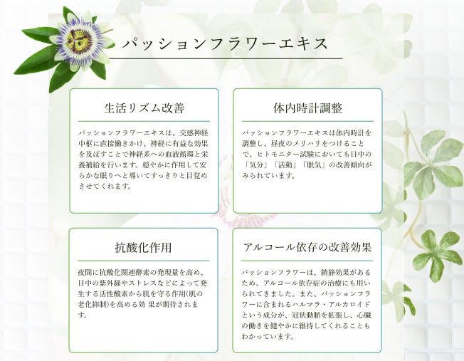 me+tasu(ミタス)パッションフラワーの特徴的な成分は、以下の4つです。