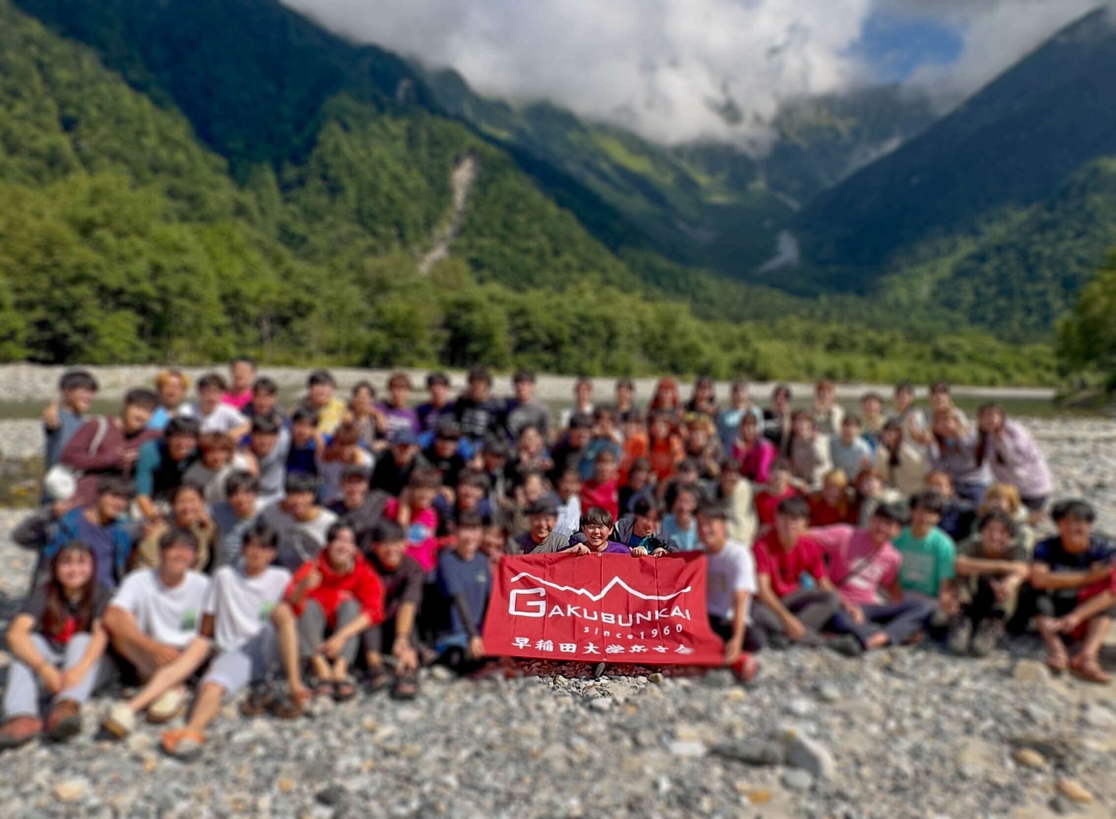 2023年 早稲田大学 岳文会 夏合宿 上高地にて(私:中央、岳文会旗の後)