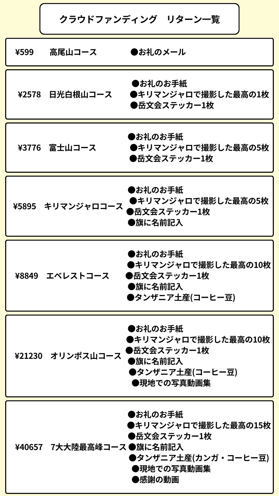 エベレストコース以上の方には、リターンとして現地で購入したキリマンジャロコーヒーをお送り致します。同時になぜそのコーヒーを選んだのか、理由も含めてお送りしたいと思っています。