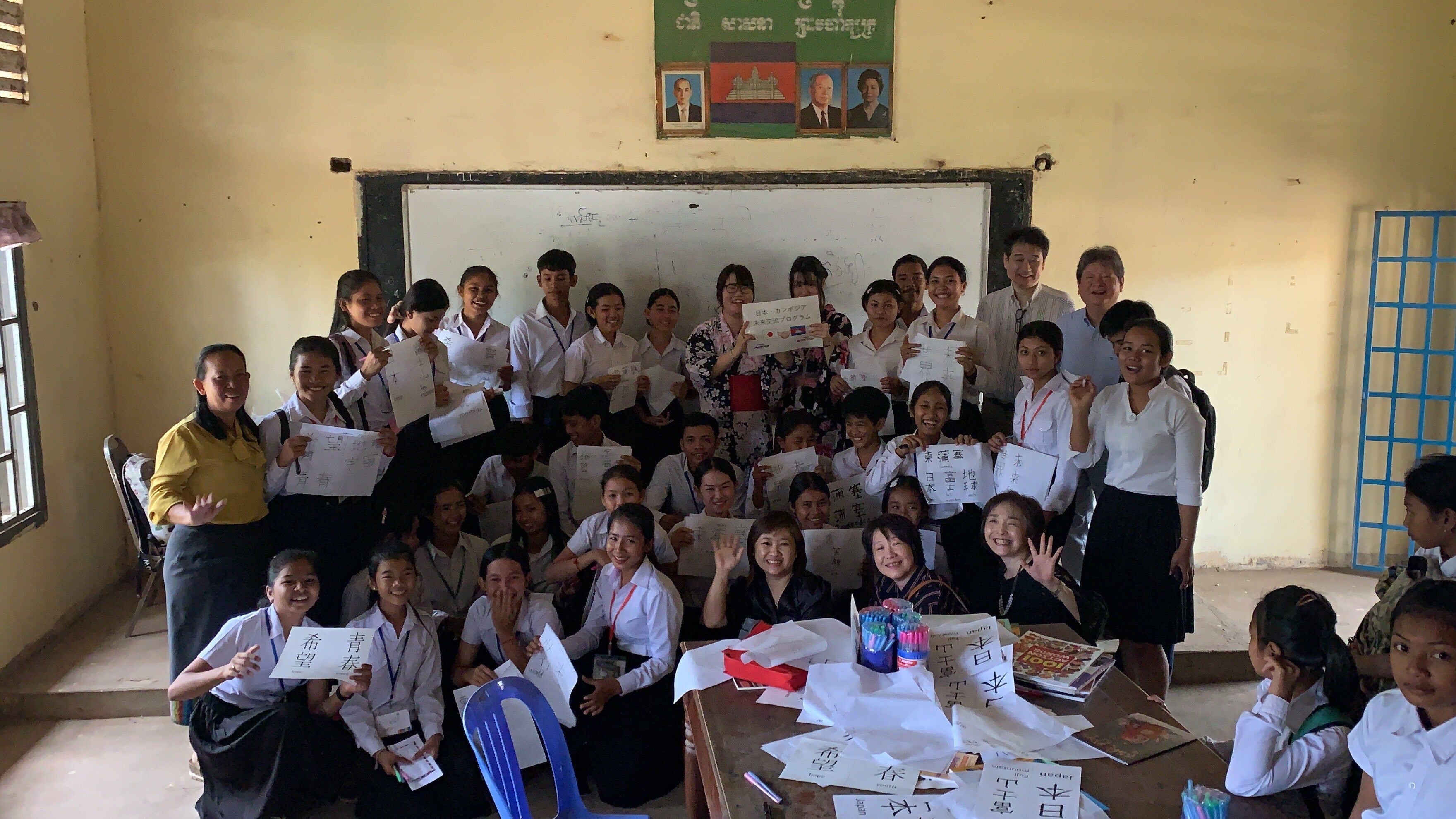 2024/03/18 08:00先日、私たちの代表がカンボジアに向かい、バテイ高校を訪問してきました。別企画として例年バティに奨学金を届けているのですが、今年も、直接現地に赴き、奨学金を届けることができました。このイベントに今回1月に来日したチョアンとパイも出席し、アクロスメンバー、ホームステイした学生たちと再会を果たしました。成績優秀者に奨学金を渡す会の代表より優秀者に奨学金を渡した後、生徒代表からお礼の言葉があったり、こちらからの挨拶がありました。そして、チョアンとパイが今回のプロジェクトで日本で滞在した感想や思いを後輩たちに伝えました。二人の話を聞いて、夢をもって努力すれば、かなう日も来るということを後輩たちもしっかり肝に銘じたことでしょう。 その後、日本から同行した大学生たち(福岡と大阪で二人を案内したり、ホームステイしたりしたメンバー)が在校生たちと折り紙や書道といった日本文化を紹介するワークショップが行われました。書道の紹介折り紙の紹介 これを持ちまして、今年度このプロジェクトは無事終了いたしました。その根幹となる二人の来日に力をお貸しいただいた皆様、本当にありがとうございました。 リターンの品(コーヒー、黒胡椒)は現地より持ち帰り、コーヒーは加工され、すでに私の手元に届いています。これより発送作業に入りますので今しばらくお待ちください。 カンボジアの状況は年々変化してきています。それでも、教育の重要性はますます高まってきています。私たちは今後もできうる限り支援を続けていくつもりです。また、次回、ご縁がありましたら引き続きのご支援をお願いいたします。 もっと見る