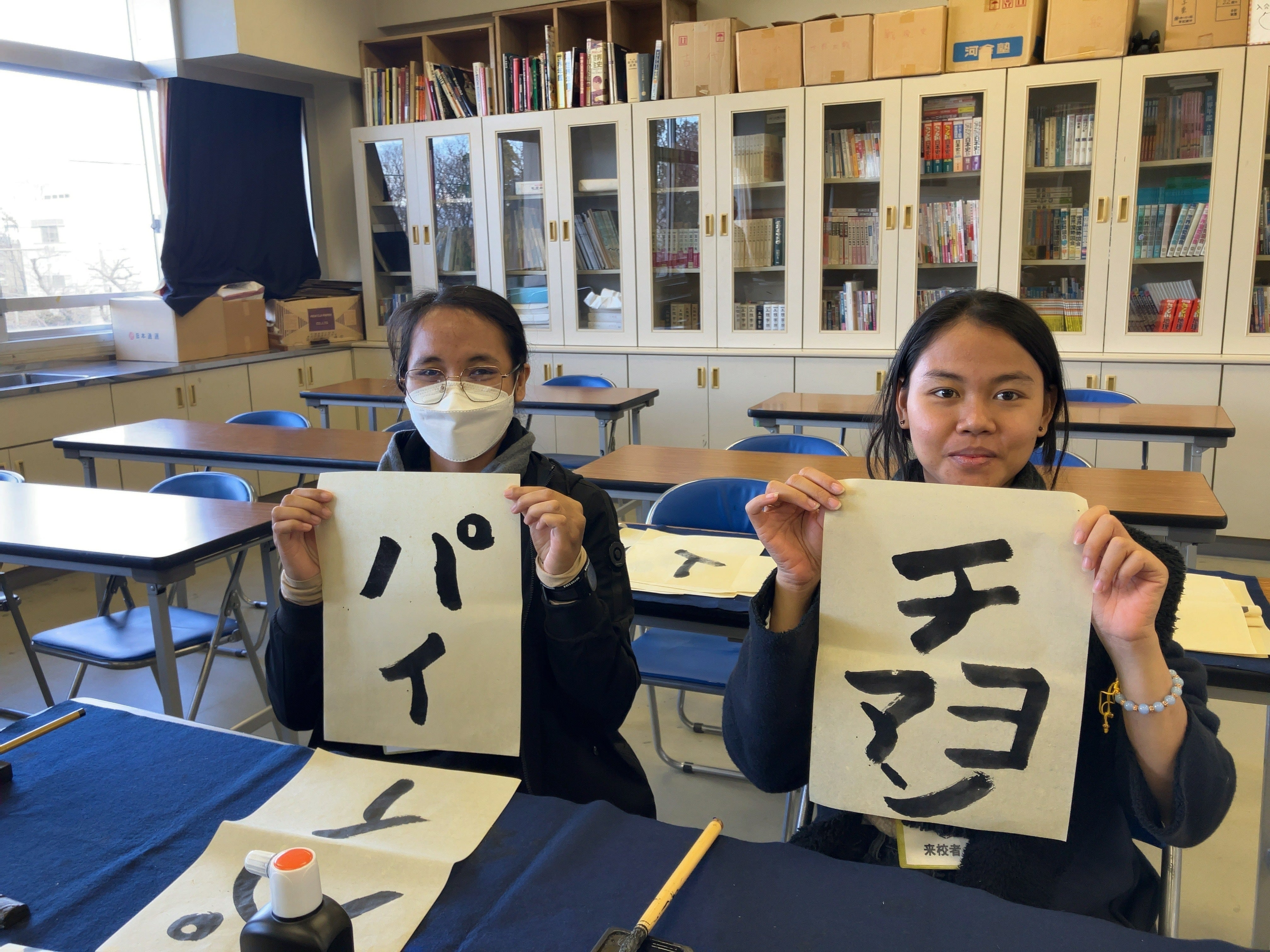 2024/01/20 11:351/18チョアンとパイの2名は東京入りし、ホームステイ先の高校生宅に滞在しています。東京でも1校、高校を訪問しました。ウエルカムボードでお出迎え授業に参加、特に書道や音楽など、なかなか体験できない授業を体験しました。お琴も体験けん玉も体験生徒たちと昼食を楽しんだり、日本文化に触れたりして、放課後はクラブ活動にも参加。いちご大福作り様々な体験をし、高校生との交流も深まりました。 もっと見る