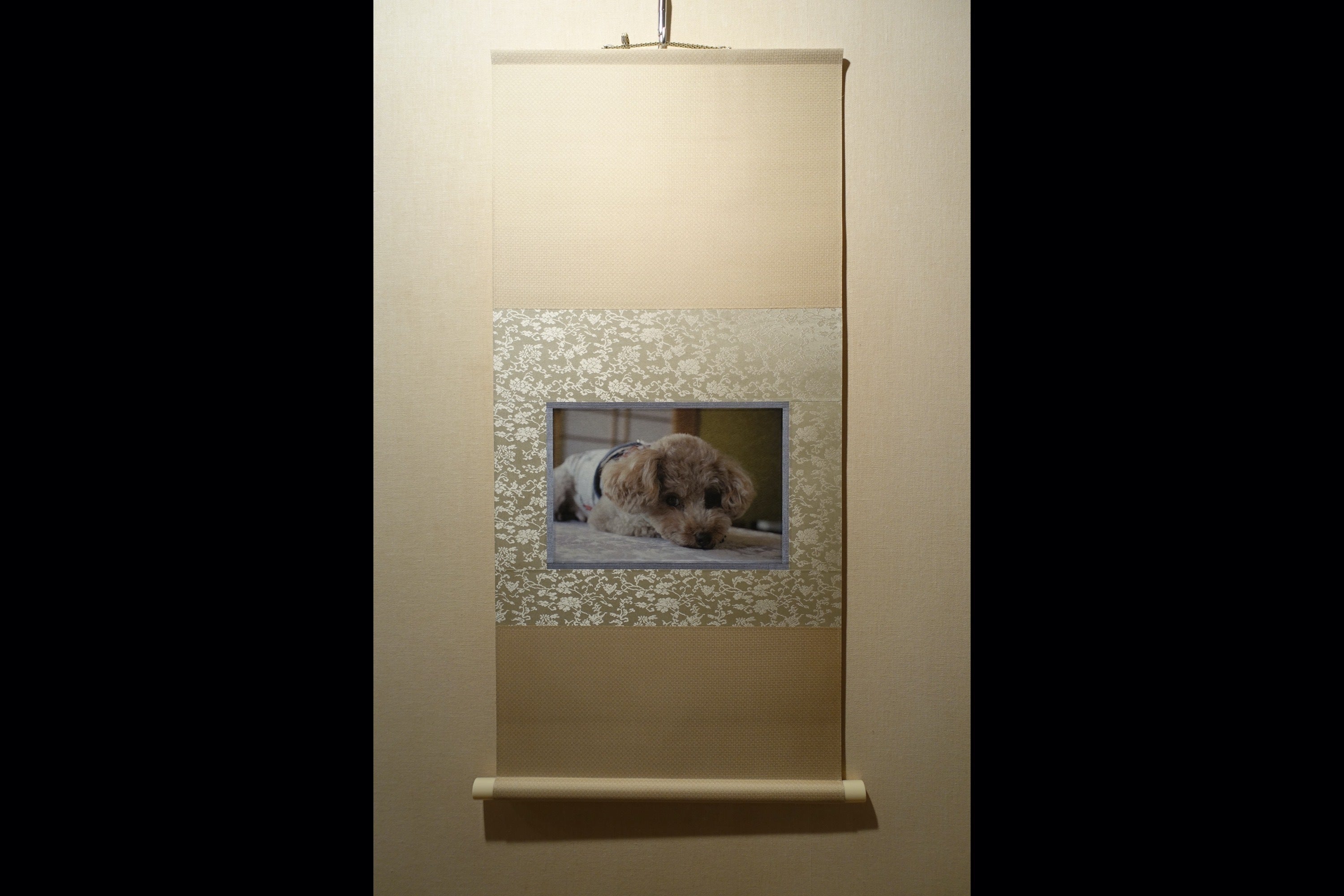 幼いお子さんの写真や愛犬の写真、旅行先でとった写真などを掛け軸へ仕立てました。