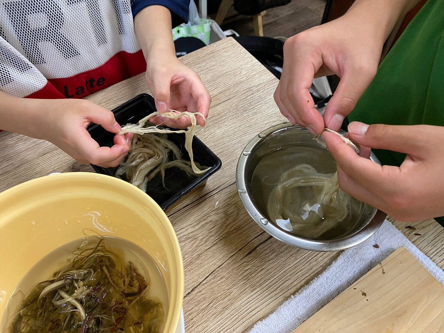 和紙作りのワークショップを開催しているところは他にもありますが、和紙ラボTOKYOの特徴は「漉く(すく)」過程を実際にするだけでなく、原料である楮(こうぞ)の皮を剥いたり、叩いたりなど伝統的な手すき和紙製造工程を目の前で見ることができる点です(少しお手伝いあり)。