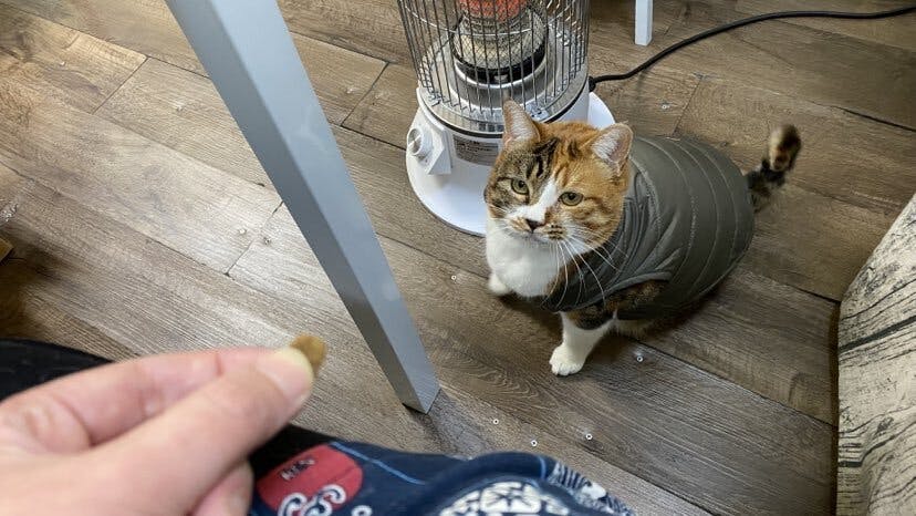 (ダイエット中なので、決められた量をちょっとずつ与えています)