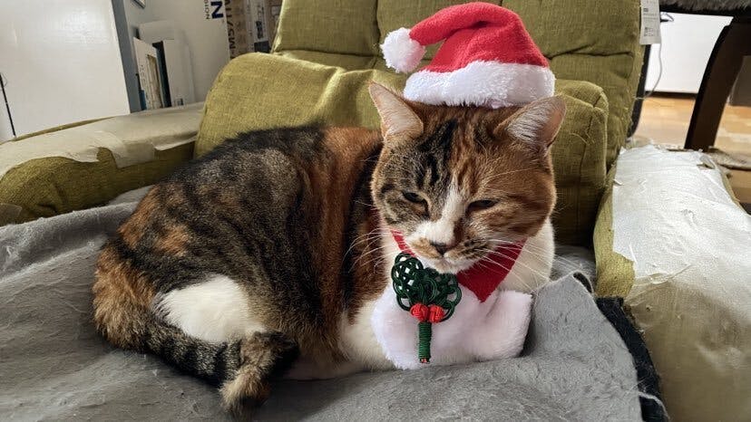 看板猫かみちゃんも今日はクリスマスコーデ!