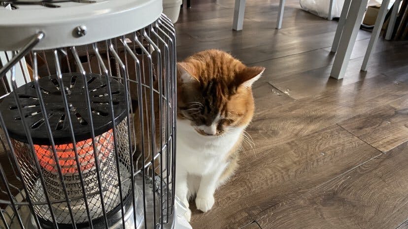 看板猫かみちゃんも久々の出勤で、まっすぐストーブの前でぬくぬくタイム。