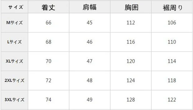 ※本プロジェクトにおいて、4XLサイズは掲載されていません。