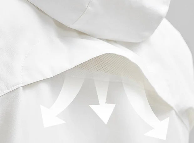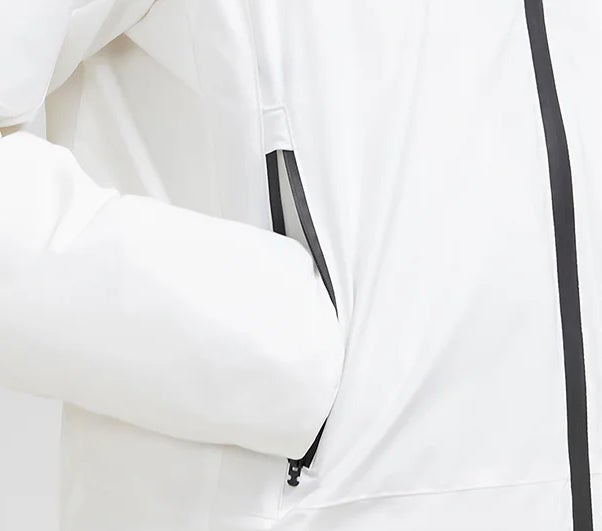 このジャケットは、取り出しやすい位置に2つの大容量の防水ポケットと防水ファスナーを備えています。頻繁に使う貴重品や小物はすぐ手の届く場所に、大きなアイテムはリュックに。すぐに欲しいアイテムを手早く取り出せる設計です。
