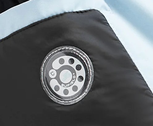 そのため、エアジャケット「EARO-WARE」は頭部と右肩部分に反射板を配置しました。夜間などの視認性が低い状況でも、これにより光を効果的に反射させることが可能となり、夜の散歩やサイクリングなどでも、安全性も大きく向上します。