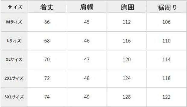 サイズ:M/L/XL/2XL/3XL