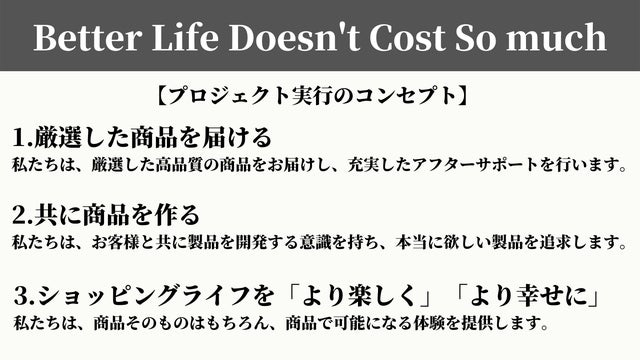 ・開発中の製品についてデザイン・仕様が一部変更となる可能性・正規販売価格が変動する可能性(本プロジェクトを通して想定を上回る皆様からご支援を頂き、現在進めている環境から量産体制を更に整えることができた場合、正規販売価格が販売予定価格より下がる可能性もございます。)