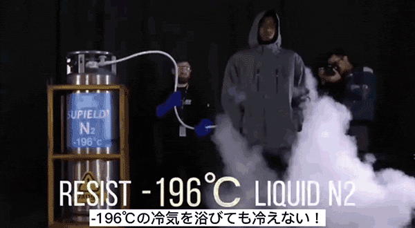 NASAが宇宙服に使用する断熱技術を応用して開発されたエアロゲルを取り入れ、さらに独自の加工を施して作成された高性能な断熱材を持つ特殊生地です。この素材を採用したジャケットは、-196℃の液体窒素を1メートルの距離から約60秒間噴射しても、その冷気をしっかりと遮断することが確認されています。