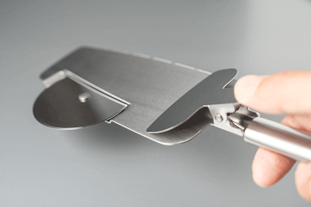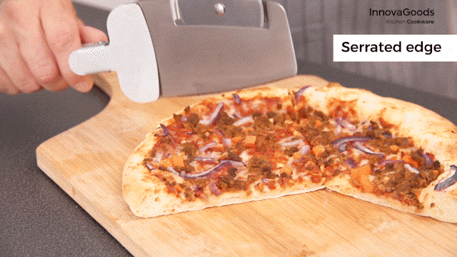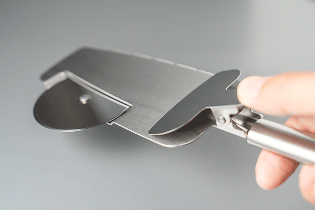 ピザカッターの反対側には、波打つように研がれた刃が設置されています。