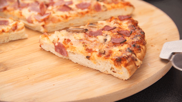 スッと滑らせピザをパクッと挟めば、取り分ける際に落としてしまうリスクが激減!