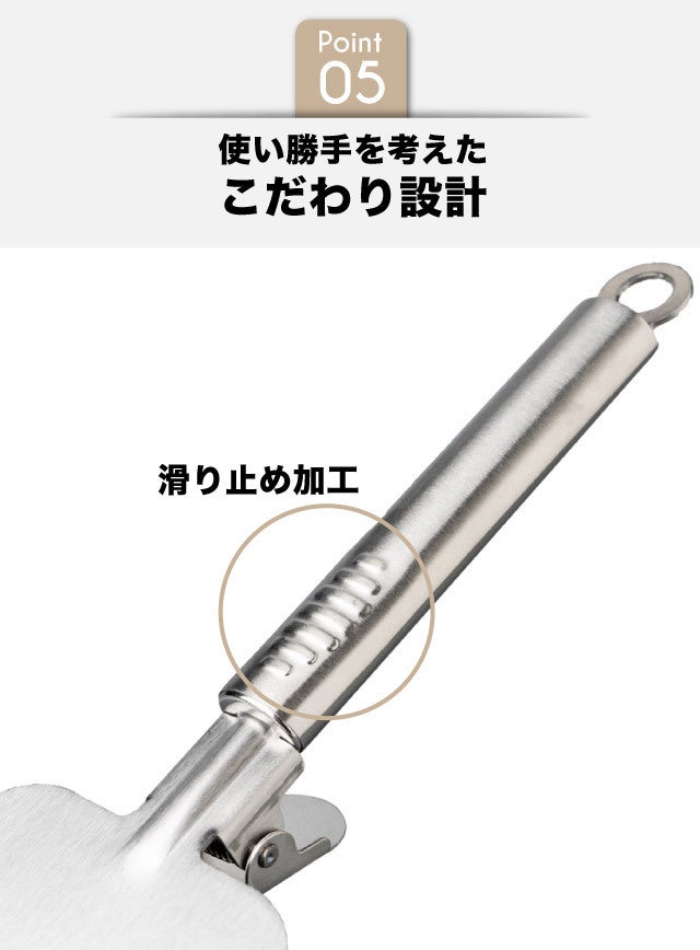 薄く作られた先端部分で、簡単にピザの下にサッと滑り込ませることが可能です。