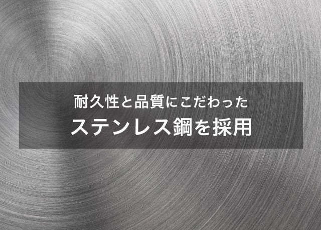 本体にはステンレス鋼を使用しサビを防止し、耐久性に優れ、永くお使いいただける商品となっています。