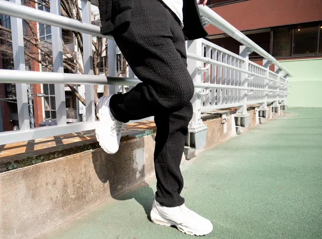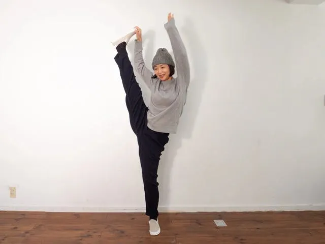 パンツを履いたままY字バランスも楽にできます。仕事帰りのコンビニジムでそのまま違和感なくトレーニングなどができそうです。出張先では、このパンツで朝ランしてそのまま仕事モードに入ったりすることもできそうです。