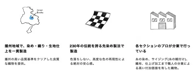 その中で出会ったのが230年以上の歴史を持つ兵庫県の織物産地「播州織」の織職人である橋本裕司さんです。価値ある「モノづくり」を目指している橋本さんは、あえてシャトル織機と言われる半世紀前のビンテージ織機を導入し1年がかりで修理して稼働させるなど、生地の肌触りや品質の高さを追求している熱い職人でした。そして播州織の新しい顔になるようなオリジナル生地づくりに奮闘している姿を見て、何かお手伝いをしていきたいと思ったのがきっかけです。