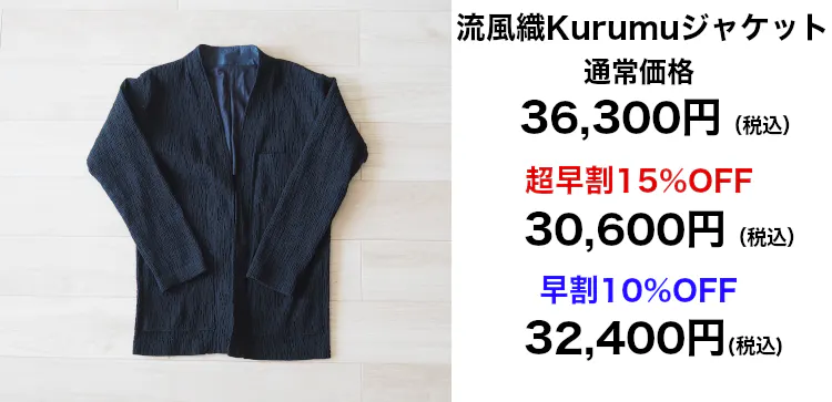しぼり生地のように見える背中部分で流風織ジャケットの個性がより発揮されます。