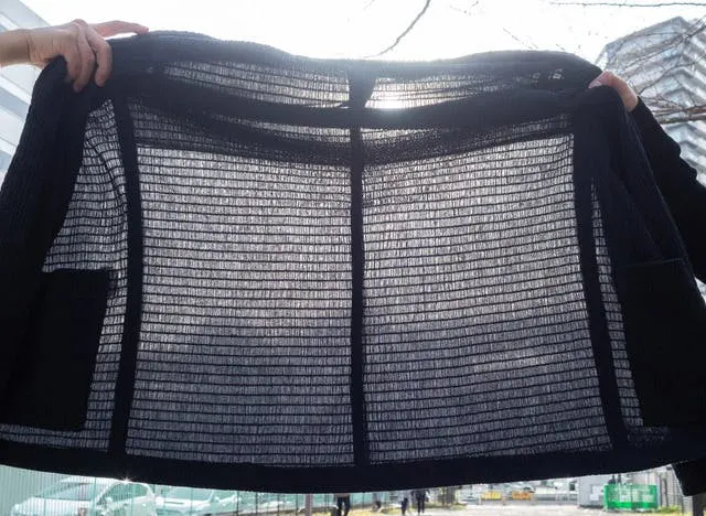 上の写真のように光を当てると流風織の生地もメッシュの裏地も透けているのがわかります。