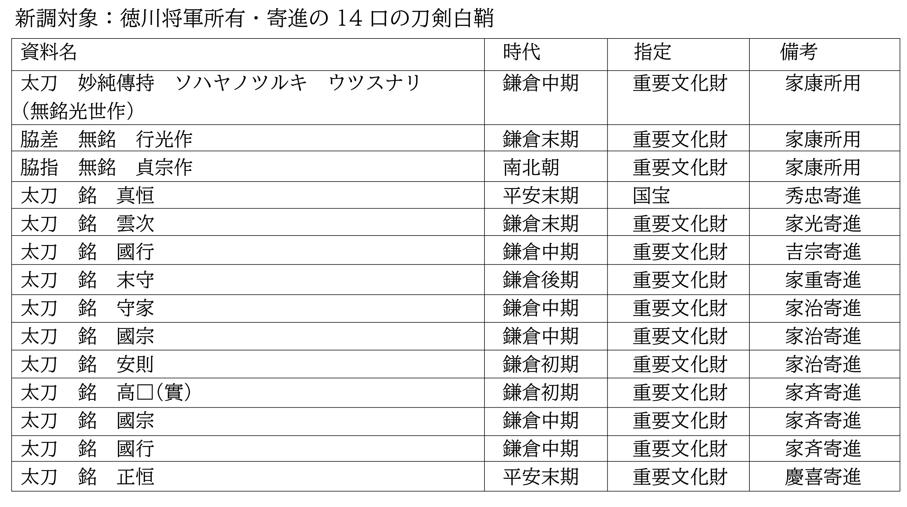 今回、修復・新調するのは徳川将軍歴代の本歌である刀剣が対象となります。