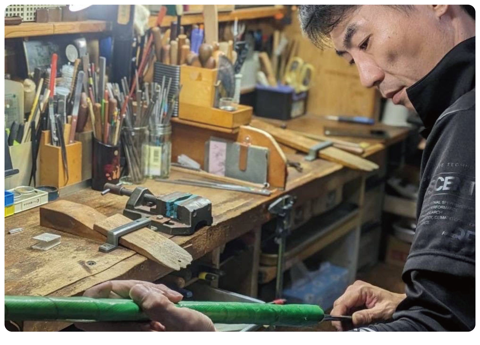 拵・白鞘ともに完成品を頭の中でバラし、一から作り方を構築していく過程が何よりむずかしい上、説明書もありません。その上、継承されず途絶えてしまった技術や物が多数あるのが現実で解決すべき課題が山積しています。しかし、物に関しては、見つかるまでとことん探していき、それでもない場合は、自ら作り上げていきます。技術に関しては、何の道具が使われていたかを探求していくことが重要です。拵の修復・白鞘の新調ともに最も困難な仕事になります。しかし、当時の技術や物をしっかり探求し今後、次世代が同じ課題に直面しないようにバトンを渡していく必要があります。