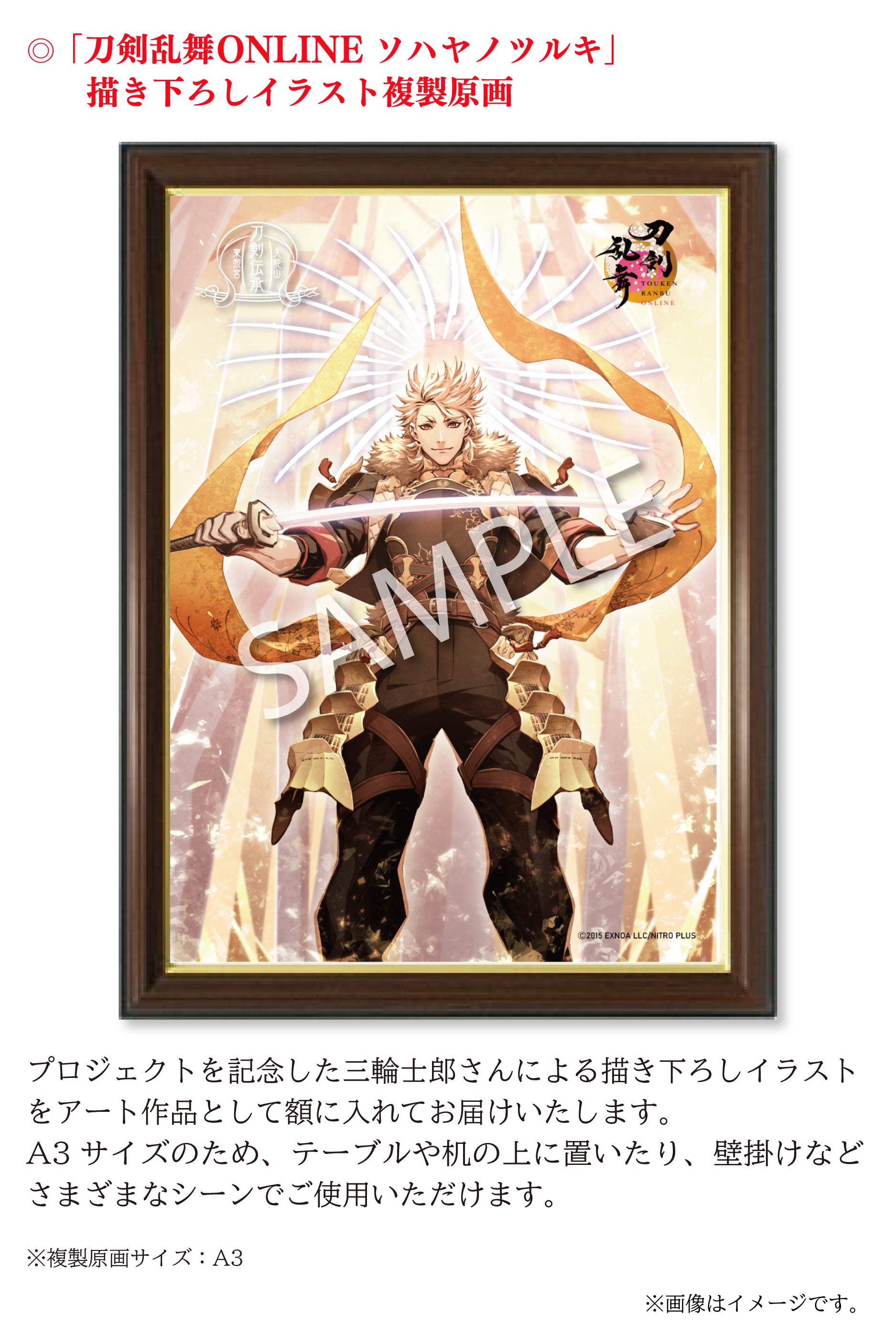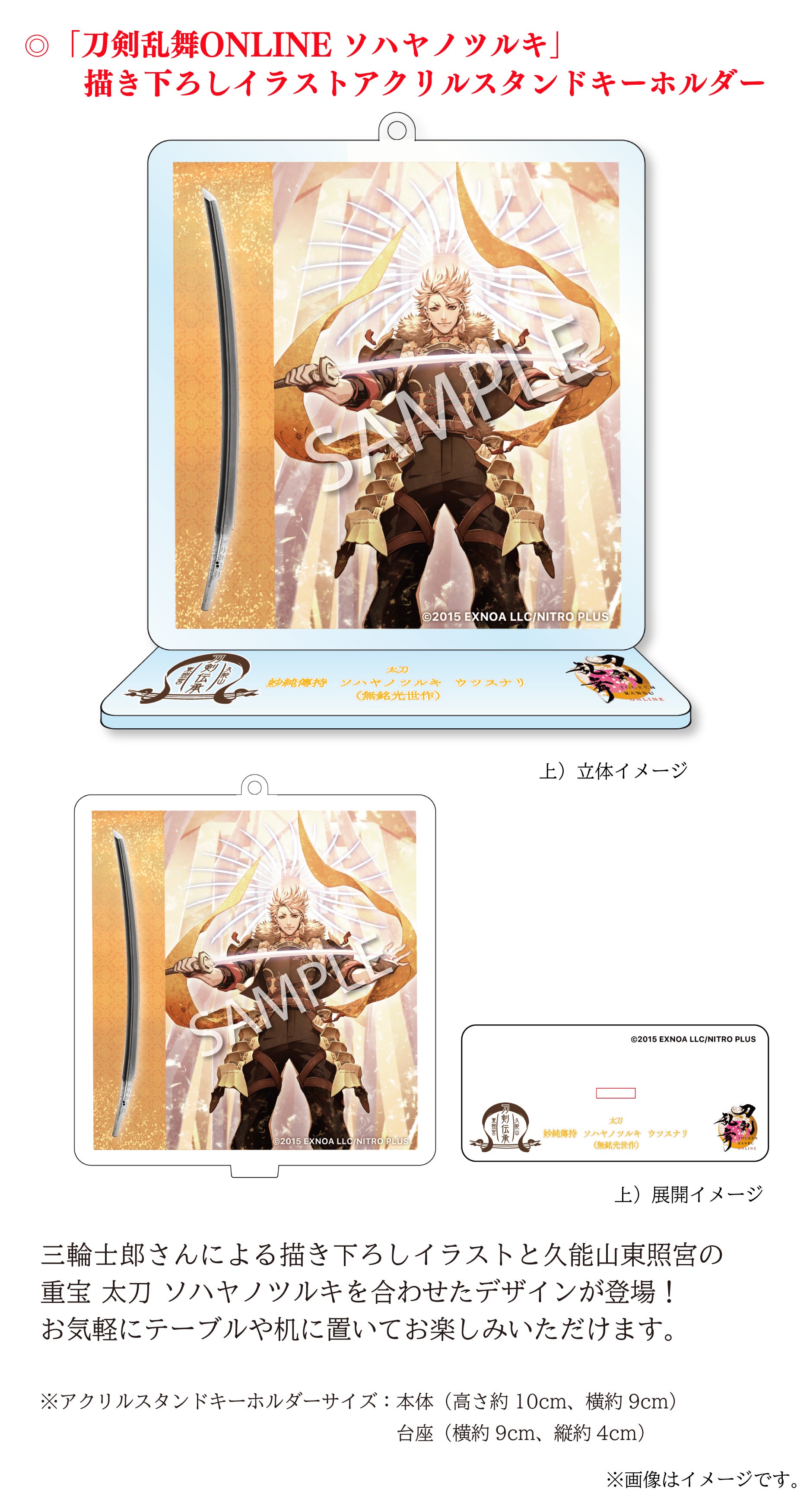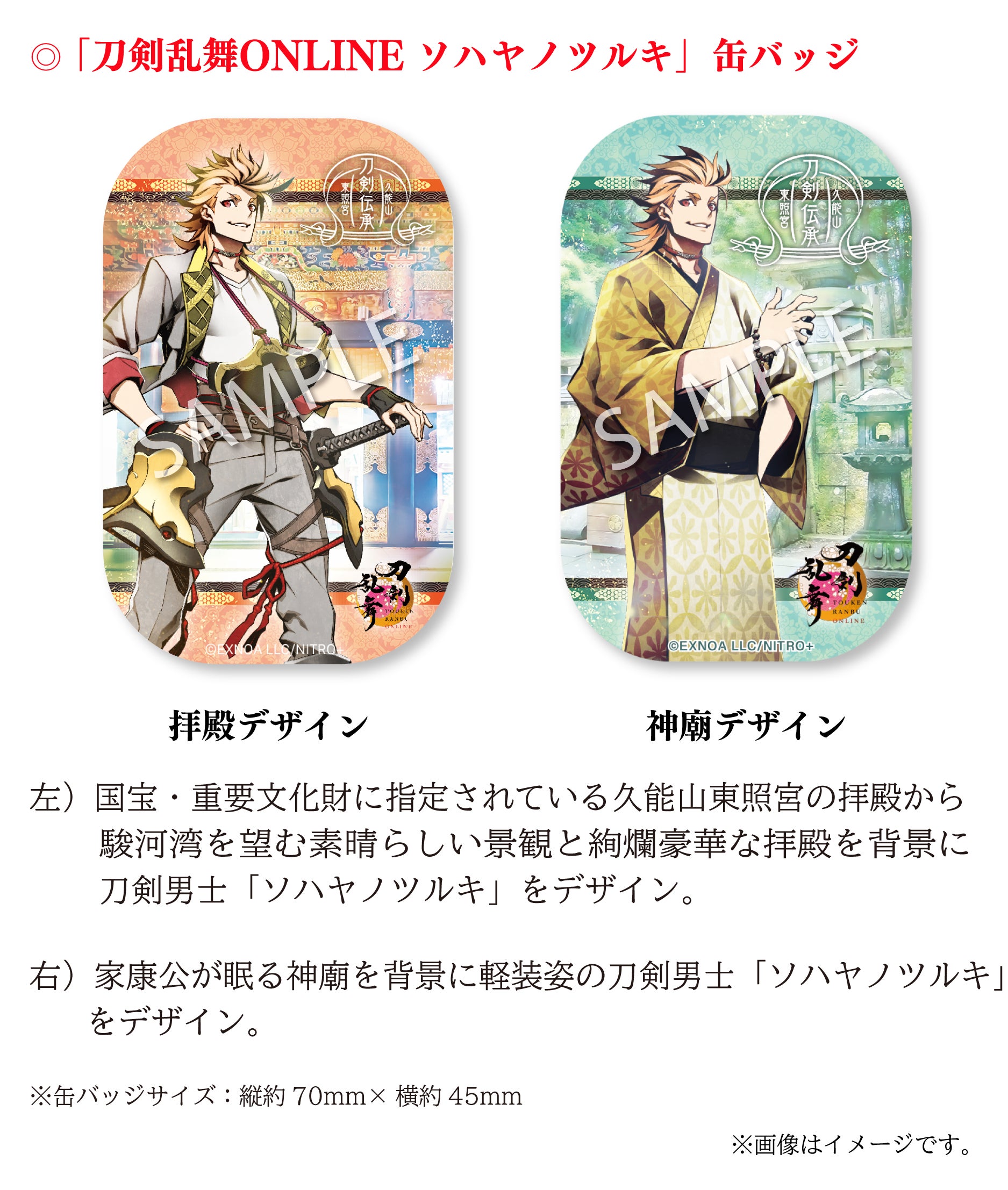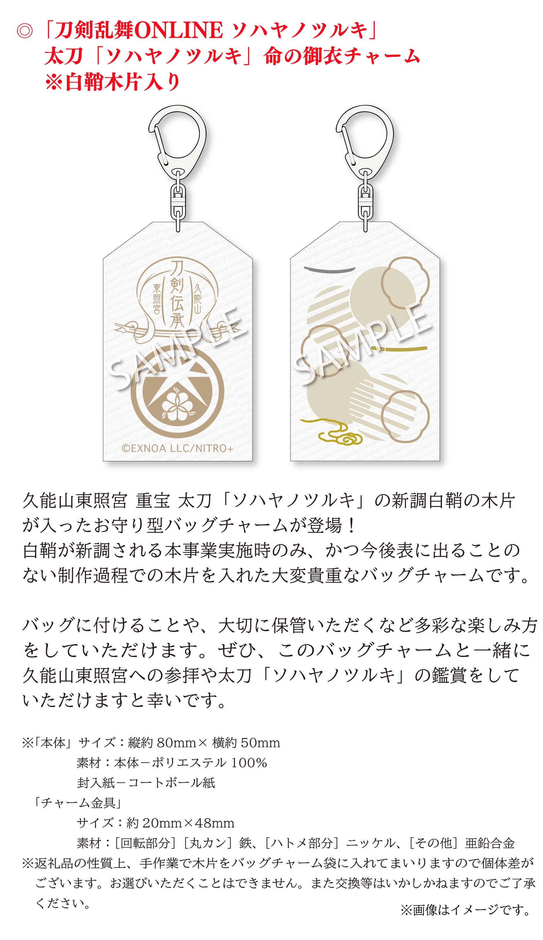 「刀剣乱舞ONLINE」は、数々の名刀から刀剣男士という戦士を顕現して、歴史を守るために戦うというゲームですが、 その刀剣男士の1振りとして「ソハヤノツルキ」が登場します。この刀剣男士は、久能山東照宮様が所蔵される重要文化財の「太刀 無銘 光世作(ソハヤノツルキ)」をモチーフとしております。キャラクターとして名前を使わせていただき、コラボレーションなどを通して作品に寄り添っていただいているご恩や、ソハヤノツルキを大切に維持や管理されていることへの敬意の気持ちから、我々にできることで恩返しをさせていただきたいという想いが常々ございます。