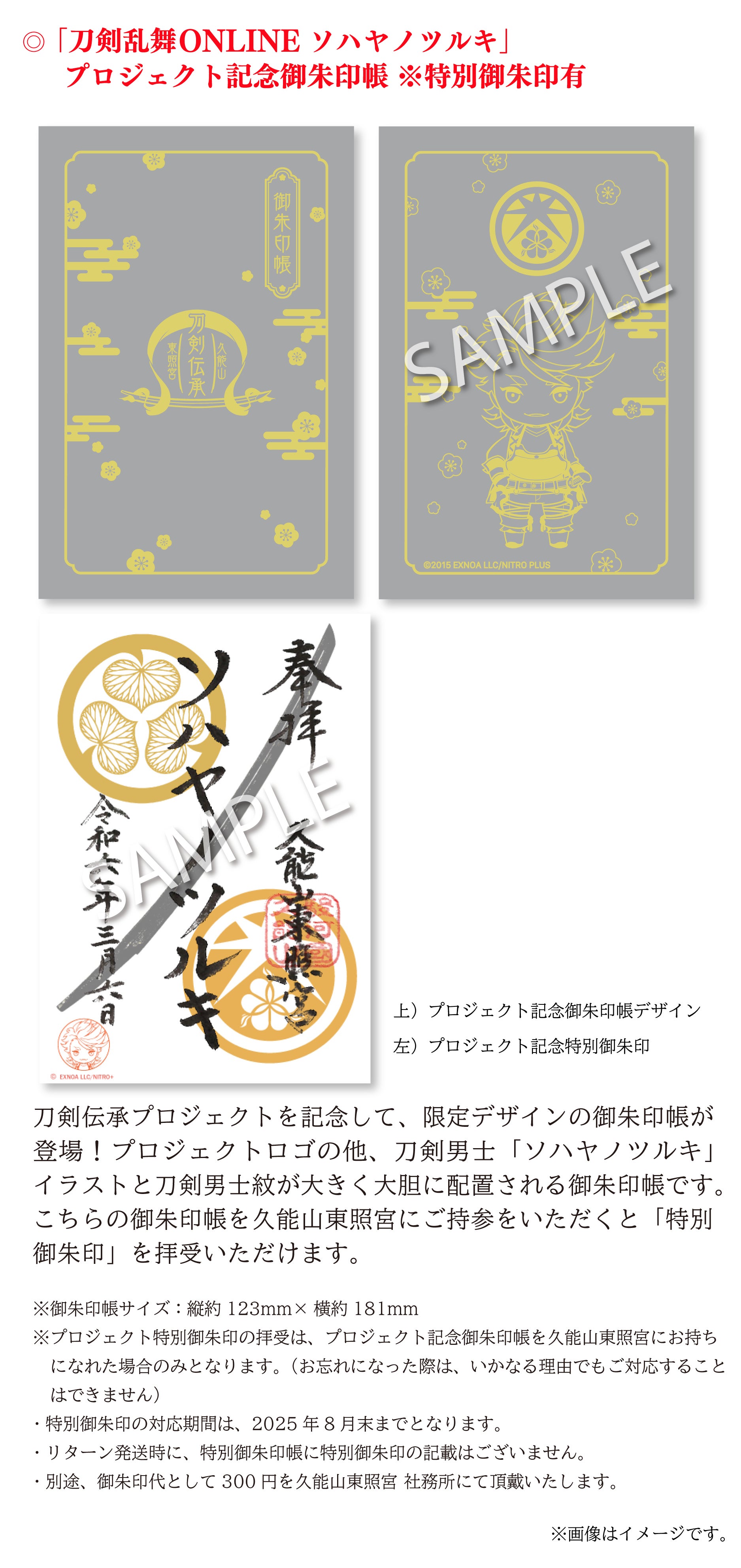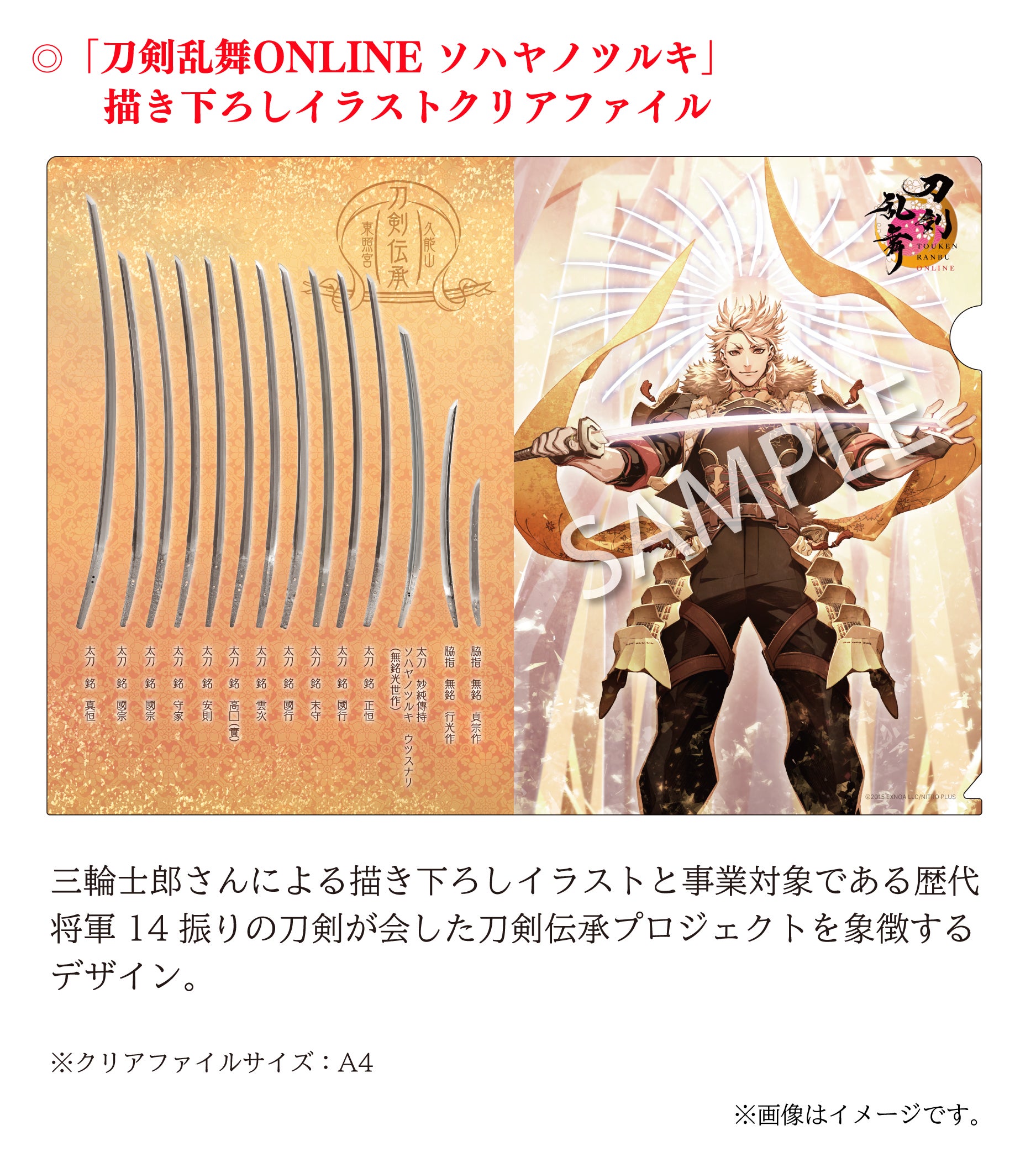 そして、本プロジェクトは、2017年12月に実施をいたしました久能山東照宮「刀剣修復プロジェクト」に続いて、『刀剣文化の発展及び文化財を後世につないでいく』という主旨に共感する刀剣育成シミュレーション・オンラインゲーム「刀剣乱舞ONLINE」のご協力をいただいております。
