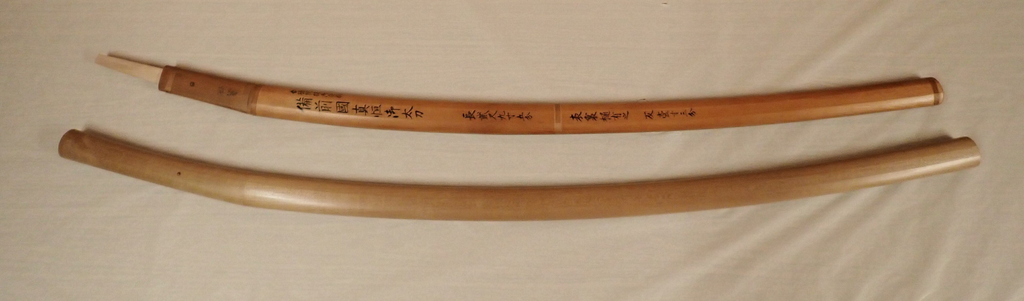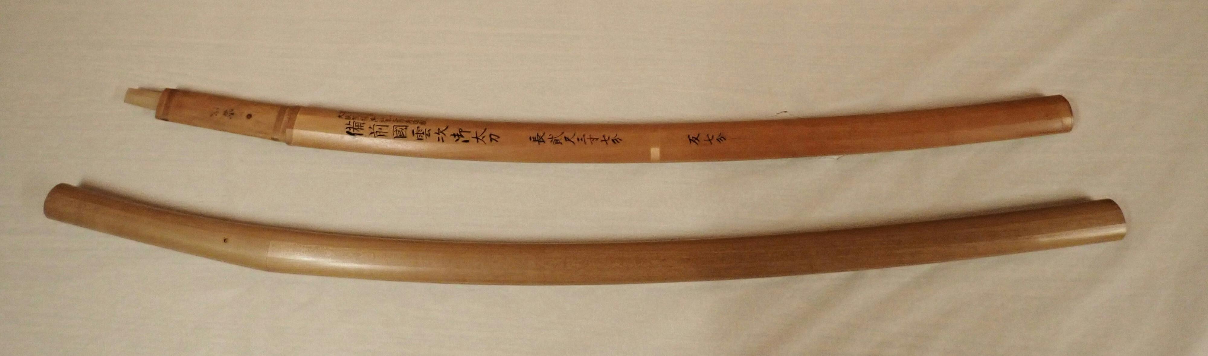 重要文化財 太刀 銘 雲次白鞘(上が旧白鞘、下が新調されたもの)