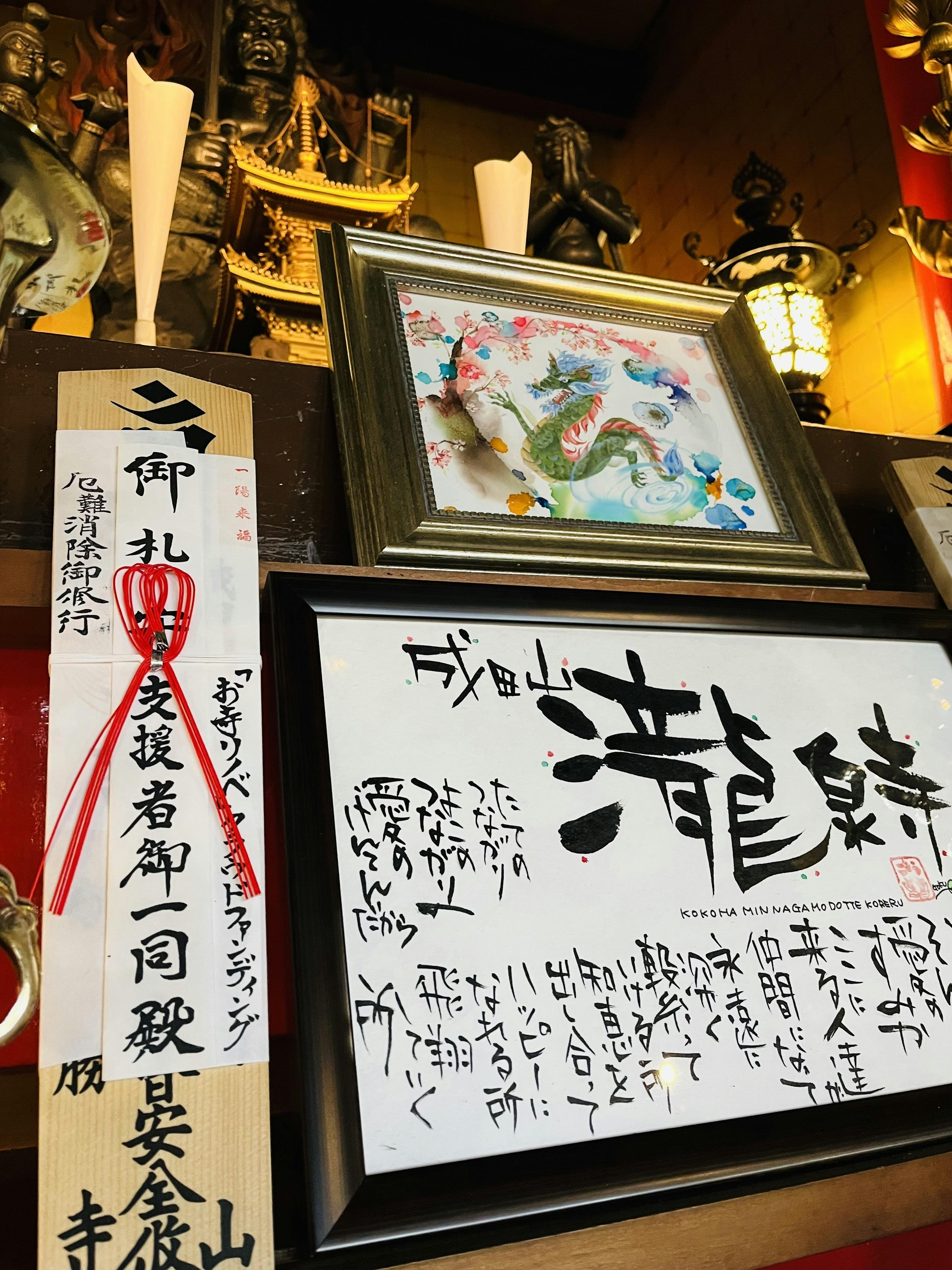 写真のように御札を御寳前にお祀りし、このプロジェクトの支援者様にもこの功徳を届くよう祈念させていただきました。