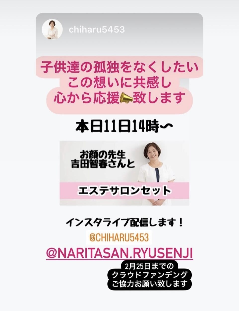 ということで、本日2月11日14時よりインスタグラム配信にて、智春さんの経験から「皆とつながれる環境」が必要だという熱い思いを聞いてみたいと思います。