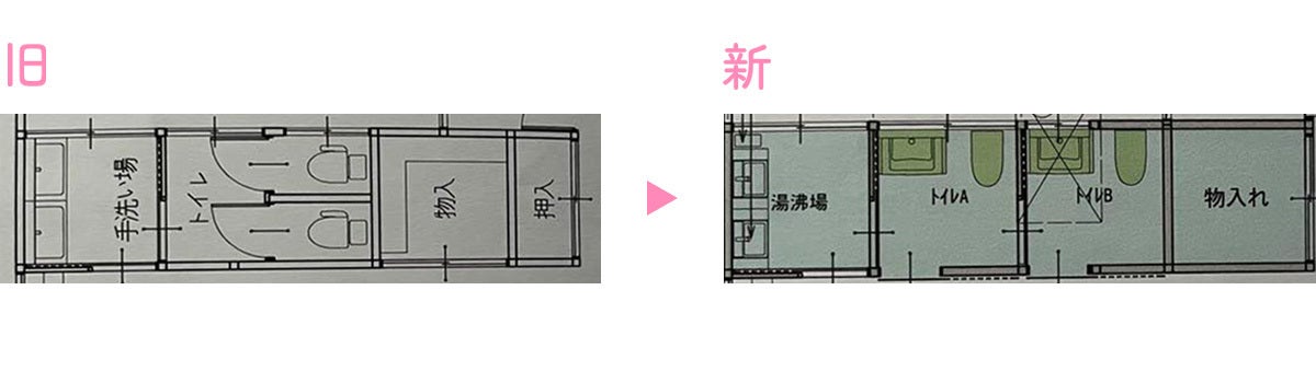 現状では、手洗い場からトイレまで、男性・女性共用スペースとなっているため、修繕後は、共用スペースがなく、誰でも快適に使用できるようにしたいと考えています。