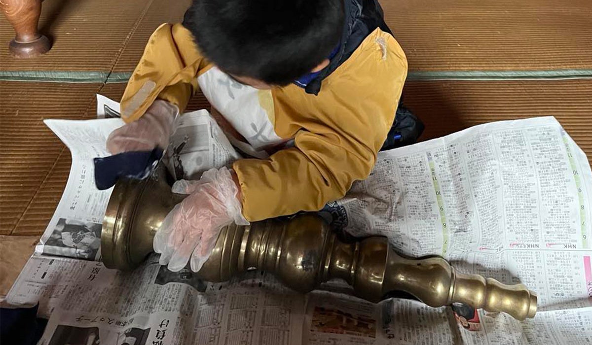 普段は一般の方は触れることの出来ない、宗教儀式で用いる道具(仏器)を磨いたりもします。