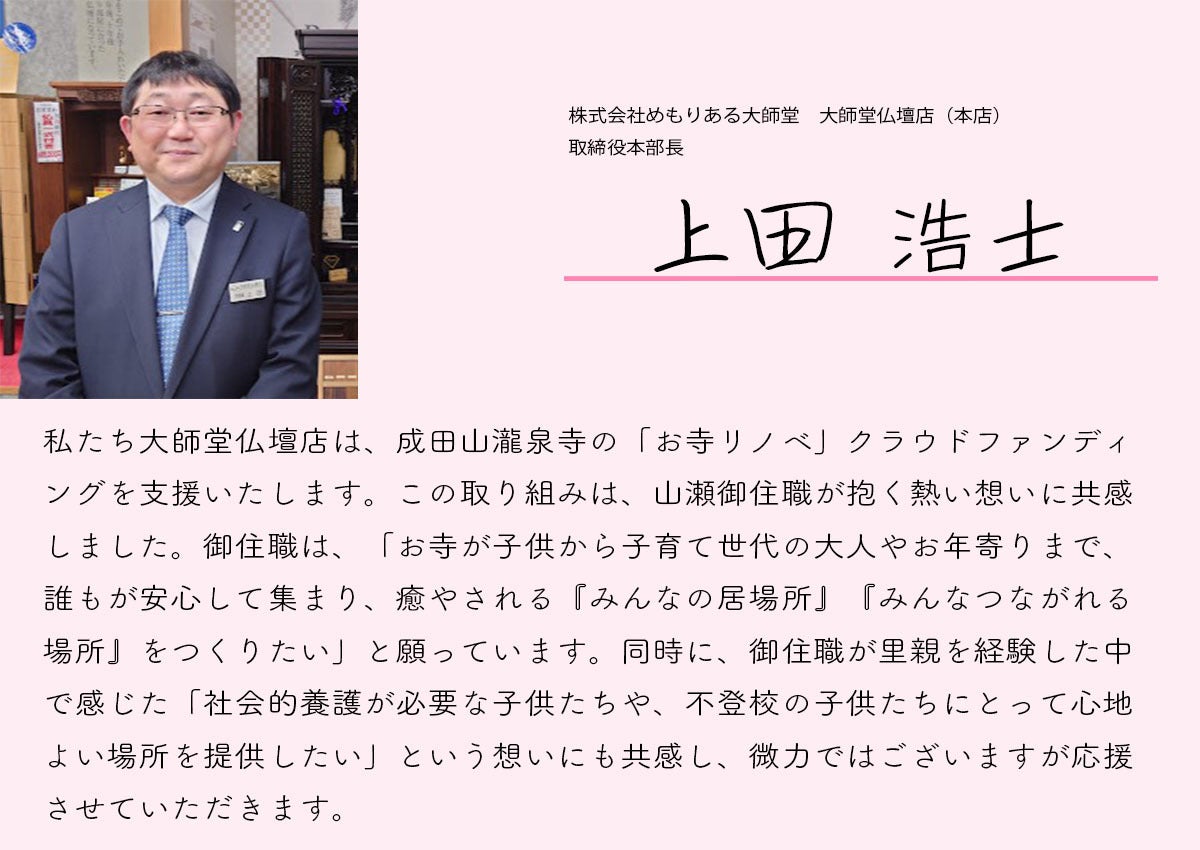 そして、このお寺をもっと社会的養護が必要なこどもたちや、不登校のこどもたちの心休まる居場所にならないかなというふうに考えるようになりました。
