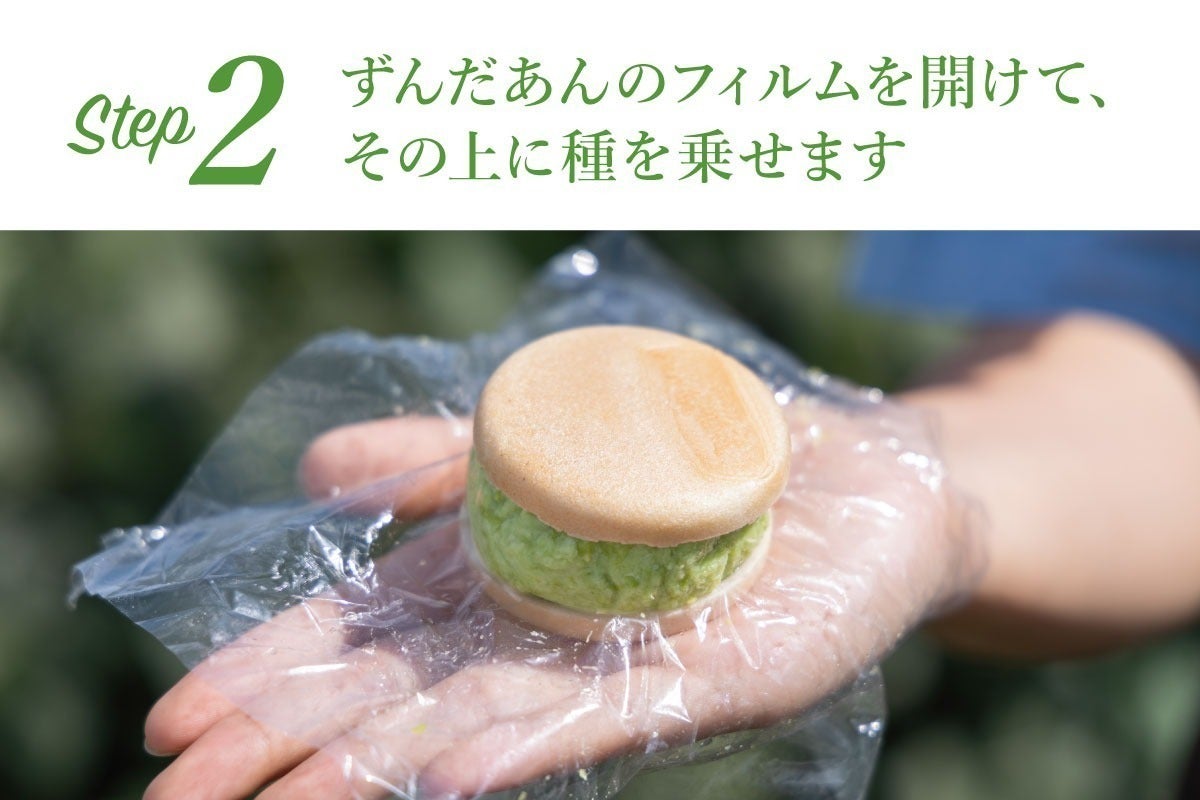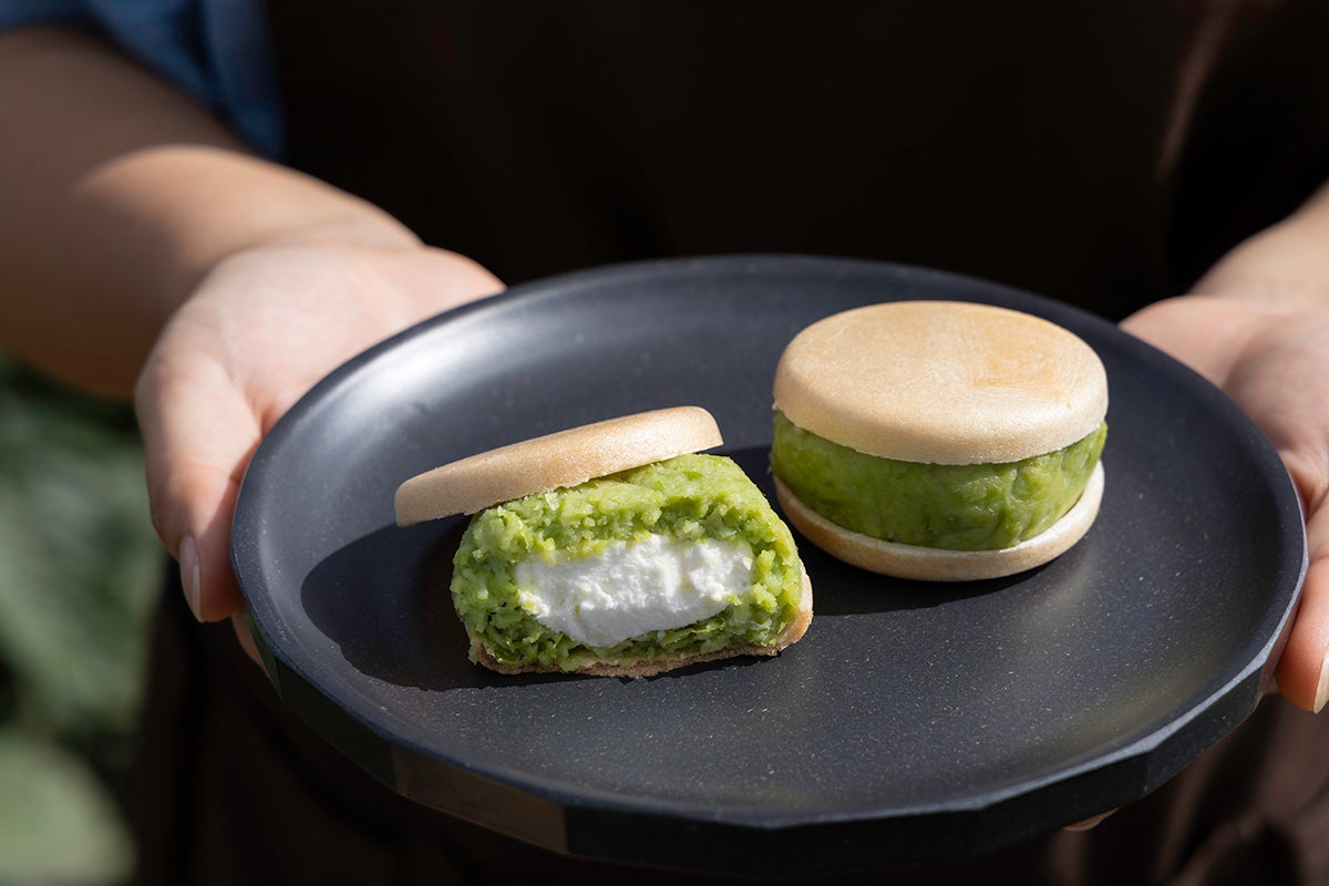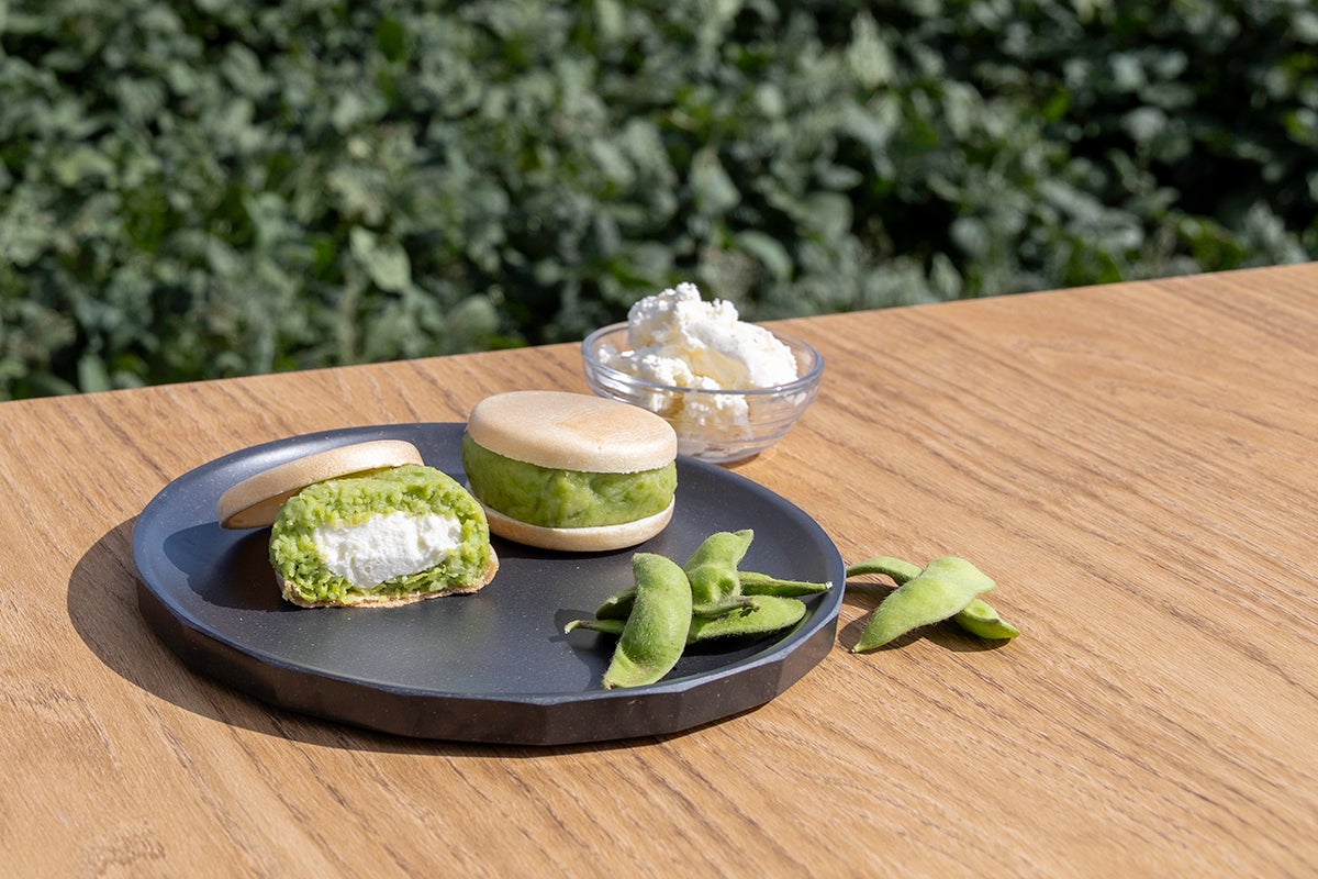 今回、このプロジェクトのために開発したのは、「すずや」が使用している角田産秘伝豆を使用したずんだクリームチーズもなかの「すず芽」という商品です。風味がしっかりした秘伝豆に合わせるものは何にしようかと試行錯誤を重ね、たどりついたのが北海道産のクリームチーズ。